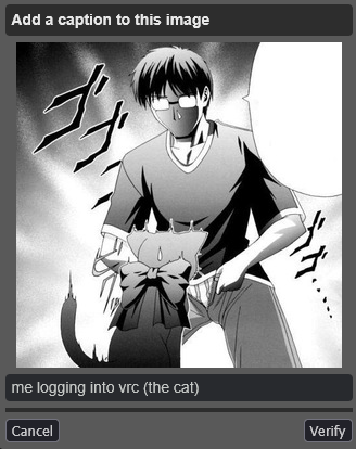 I told you retards that a /bant/ thread wouldn't save us from schizos, it just invites fresh new schizos who haven't burned themselves out yet.Also what the hell is with these new captchas? I just got one asking me to caption the 'A cat is fine too' panel....