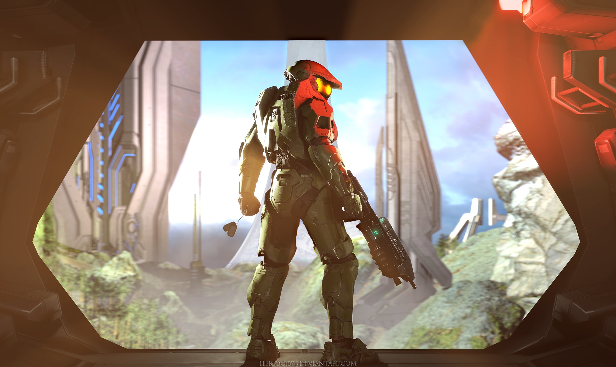 >>82056114...>[ Tora was left in awe. That nuke, he's never seen something like this before. But from a first glance, he could tell this was something destructive. Perhaps rivaling the light without a shadow...]>[ But all that changes when the metallic doors open. Catching the tiger's attention. ODSTs? He's seen one human with that armor before and had a nice chat with him. But all that changed when catching a glimpse of Joe Chief, that armor and color. Bringing back memories of another he had met. Tora can't help but smile. Finally, he's been waiting for him! ]>[ He'd wait a moment, letting Chief and co walk for more steps... Incoming! Dropping down from the ceiling, announcing his presence with a heavy impact on the metallic floors. Making sure to land a right in front of a random ODST. The sheer impact from a beast equal to a hunter in size, knocking that poor ODST right off his feet. ]Oi!Oi!Oi! I've been waiting for you! "Broomsprayer!" You owe me a rematch! You ain't gonna get lucky like last time! C'mon! I owe you an ass-whooping!>[ He might be mistaken Chief for another, it seems. ]>>82056132(The fuck is this?)