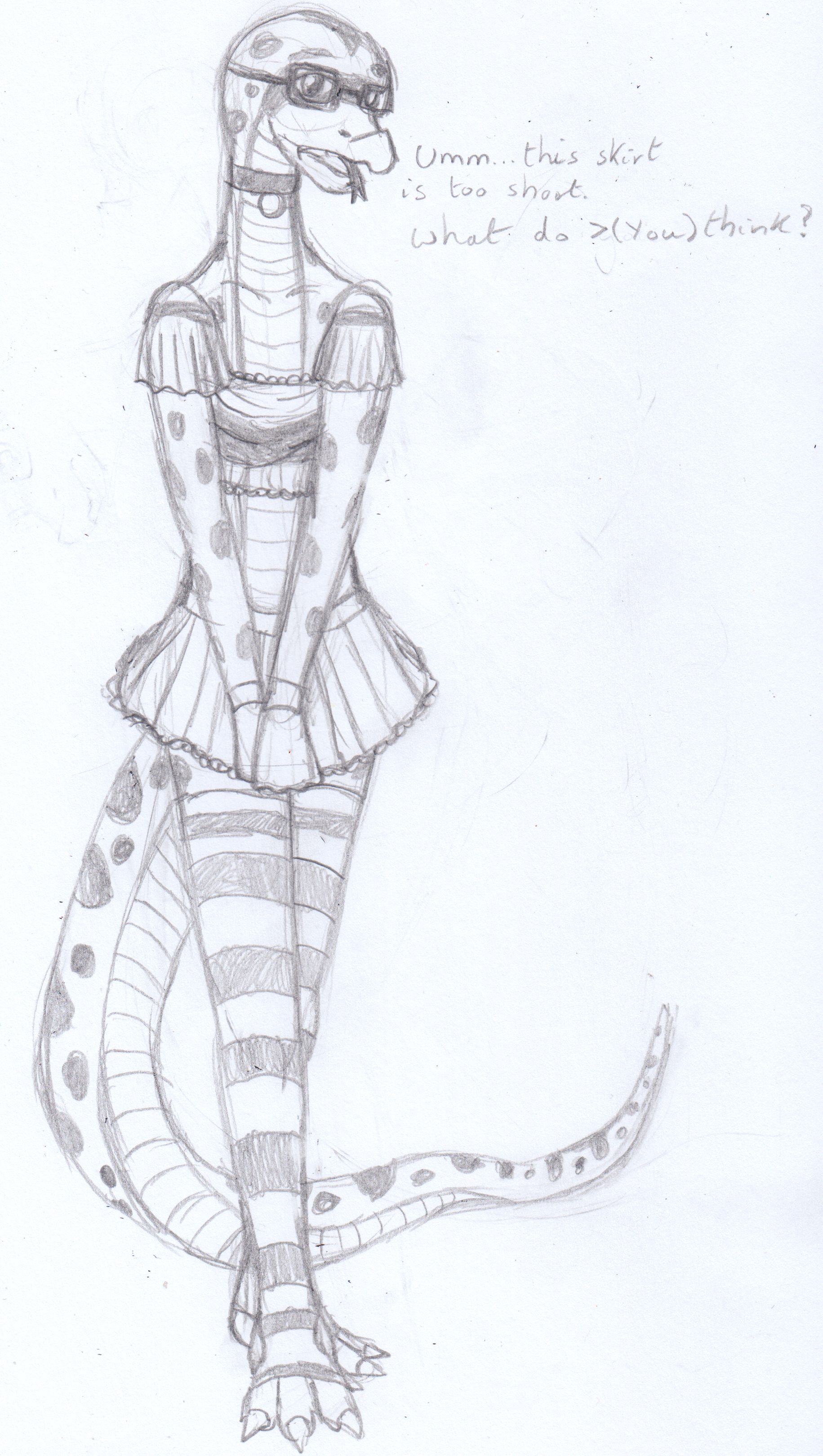 Hi /scaly/ just another regular update on thingsCurrently from an implementation side, my work on the rest of Day 5 and 7 is progressing (Sarah, Karl, and Jamie's optional meetings). Next release 0.2.1a will contain these meetings once I've got the sprites from Lizardanon to put in; I want to try to avoid having as big as a gap between the last release, so the one after this one will contain day 8 (Lillianne/Noelle and Karl). Which will wrap up the rest of week 2I'm trying to move to a model where I release as much complete stuff as I can rather than more sort of piecemeal updates. Pros are bigger updates, cons are longer times between them; 0.1 had a lot of subversions but 0.2 I want to try and keep it more complete, and deliver the game to >(You) in more meaningful updates rather than incremental ones which might be more unstable in terms of bugsI also have done some more on the design side and I have come up with a first draft for Sarah's alt outfit for later in her route when you go to the concert with her. She's rocking a crop top and her battle jacket. I also in the process discovered that the tail fishnet stocking is something I'm really into, let me know what you guys think. The scene this will be in is the first proper date the player goes on with Sarah at the concert she's been mentioning and that you get tickets for (the earlier ones are casual hangouts/stuff you could write off ass "hahah that totally wasn't a date, right?")(cont. next post)