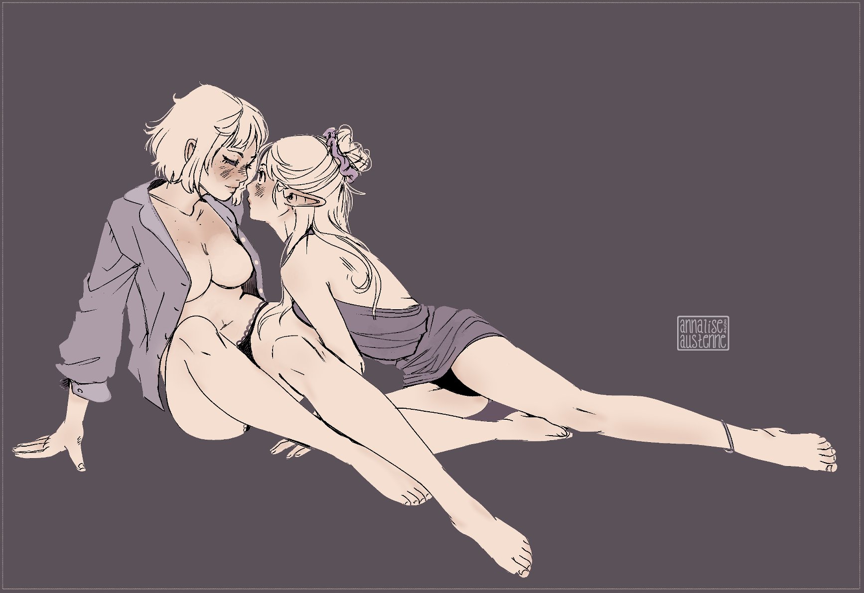 >>82098511S-sorry Falin c-can't take it...A-aah... mmmffmm-!>Marcille explained, before she instantly shook and moaned as you readjusted her hair so gently, even such a small interaction getting her worked up...Nnff-! M-more... please...>she practically begs, even before your hand lands on her chest, squeezing it tenderly with your whole palm, even if it's not quite as well-endowed as her partner, forcing out even more of a moanAAAH-aahhh...~!>hearing (and seeing) this, her almost-as-equally bothered companion comes closer to reassure herIt's okay, it's okay, just focus on how you feel... we'll deal with that later... >Falin says, supporting her elf "friend" by massaging her neck, still very close to her as you continue your advance, her chest almost touching the other female, very close to where your hand is...Ah, thank you... stranger, even if it puts you in... quite the unfortunatw situation...~>she says, looking over at Marcille's pleasurable face, the sight having quite the effect on her...Yes, we are...~ i don't suppose you'd understand, but we've been more than partners for quite some time~