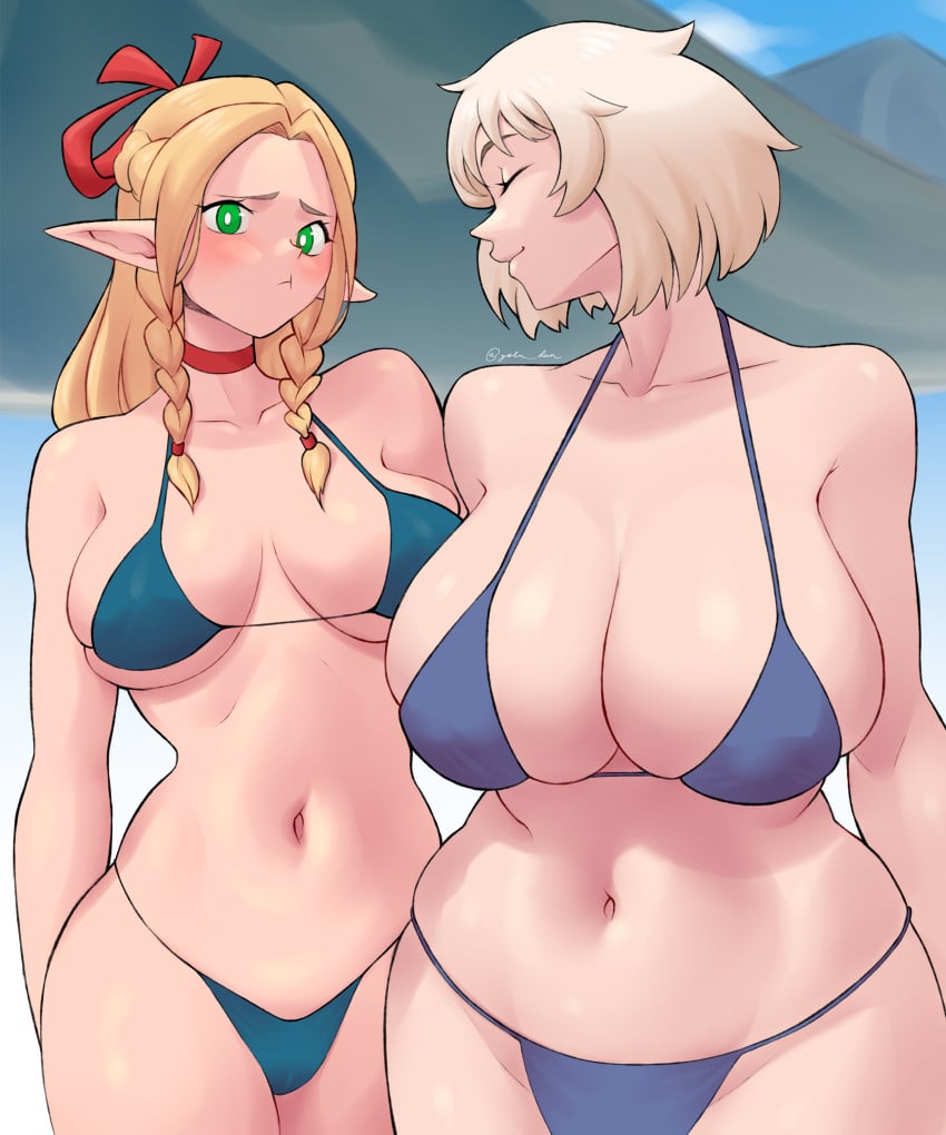 >>82098250We've been influenced by a... curse most fowl...! It can only be broken by the two of us, but...~>you can see Marcille almost ready to burst as the human explains the situation, looking at her with worry in her eyes, patting her head to calm the elf down... ...I could endure it just enough to reverse it... but my other half seems to have suffered from the side-effects quite severly,... and i doubt she could help me out anytime soon...~>Falin's tone of voice drastically deteriorates into huffy, moaning-like sounds as she starts to lose composure as well, barely holding into her modest appearance. The elf, meanwhile, appears to be struggling with... almost touching her breasts and crotch right before you as she looks deep into your eyes, almost fixated with a maddening gaze...? Not to mention the quick glances at your pants...All... i'm asking of you, is to use your natural attributes as a... man, to help her out with the heat nestled between her loins...~>the human explains, before calming down the elf yet again eith some shushed sounds, hugging her closeShh, it's alright... i understsnd you need this at the moment~>the elf girl simply nods as a response, seemingly unable to talk back...