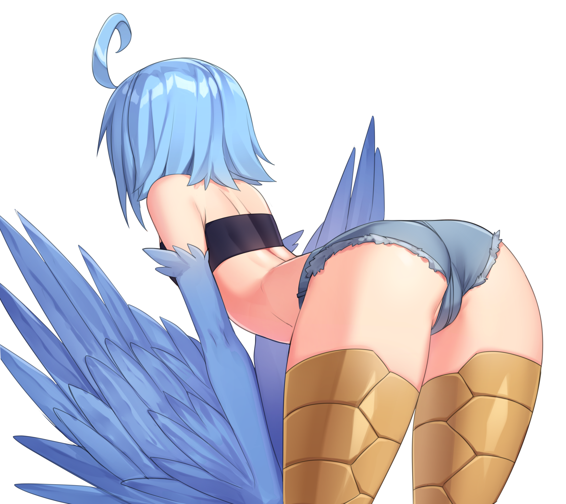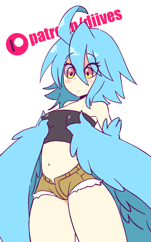 >>82099959>Arms...?>What arms...?>All the strength flees your fingers. And I mean, ALL of it. You can't even curl your fingers anymore! Feathers burst free along the length of your slim arms, blue in hue, steadily growing longer and longer with each passing second! At the same time, your taloned feet click gently as large .. well... talons grow out, each claw tip sharp and deadly. If any other adventurer saw you now, you know what they'd call you...? Abomination. Half-breed.>And, to make matters worse, you can even feel your hair changing! A soft, short blue bob...