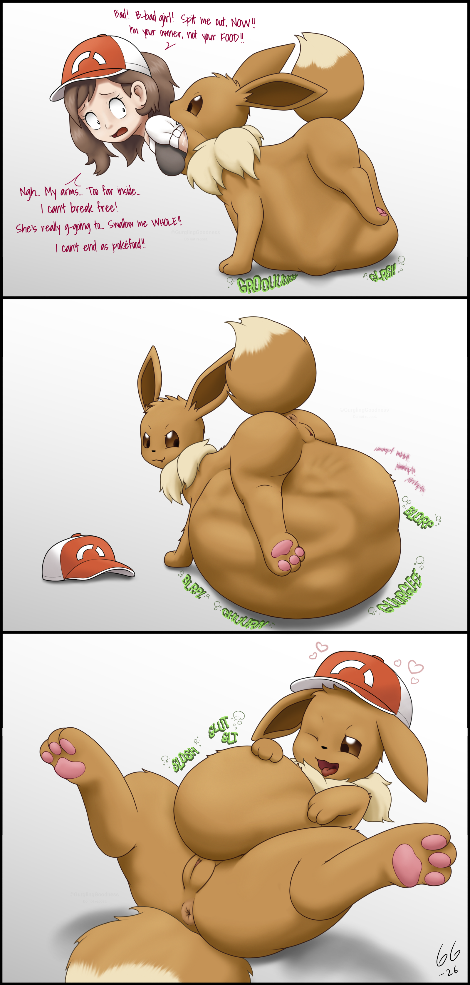 Imagine getting your beloved Eevee stolen, just to find her somehow gobbling up the would-be thief.>inb4 she turns into a Sylveon, after you kept rubbing her belly until it went soft