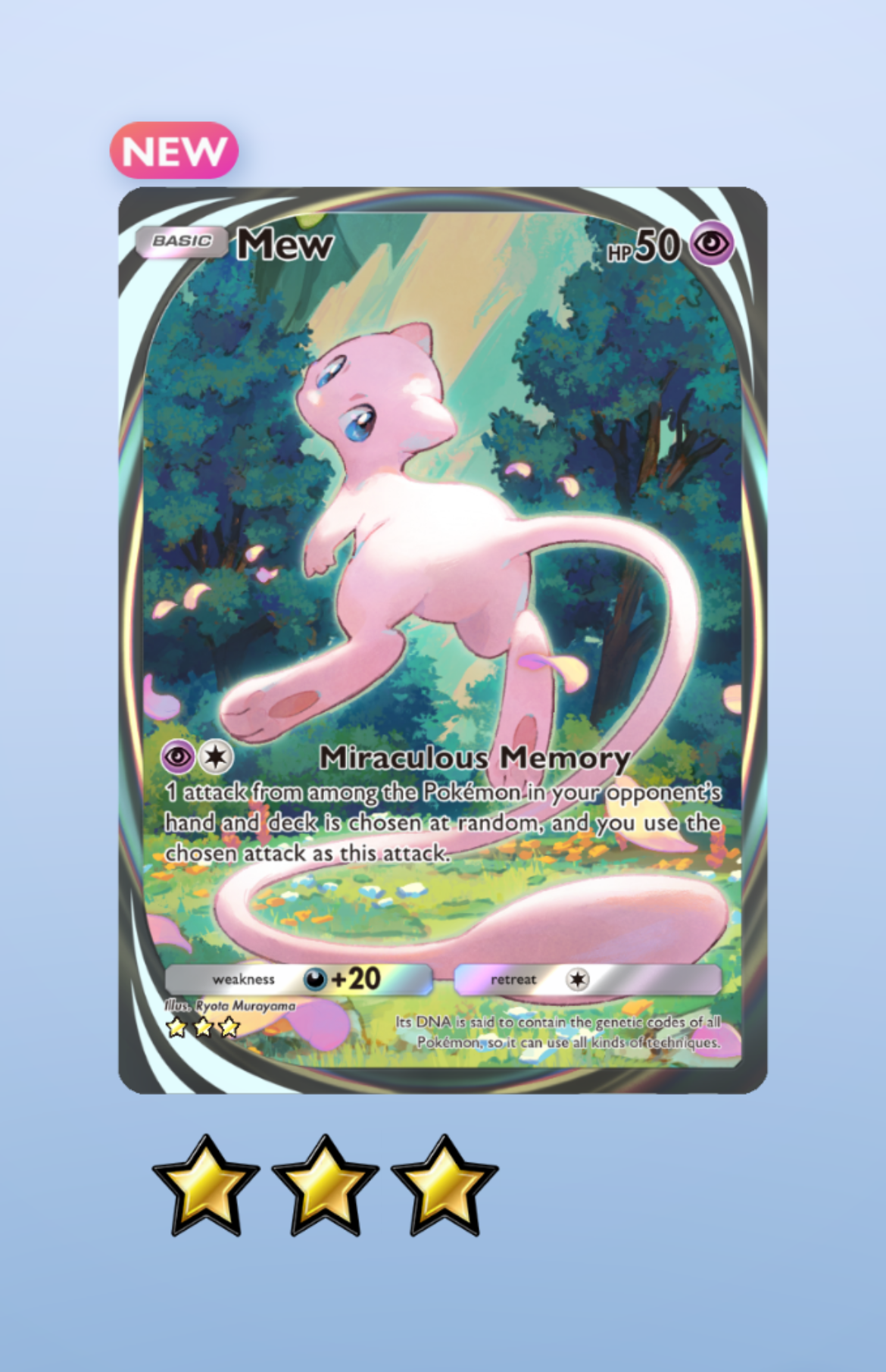 >>82181984Heh, purple fart. The immersive is kind of alright, was expecting a bit more than just Mew and a bunch of cutesy pokemon on floating patches of land. Honestly, it may be my least favorite of the bunch after reviewing all the ones I have. Forgot how cool Meowth's is, since it doesn't even focus on it and just shows the fantastical parade. Though it's really hard to top how cool Dialga and Mewtwo are. I suppose I like this card more than Mega Charizard Y, at least. The main appeal really is Mew's big fat ass.>Mew isn't a cat, nobody can convince me everThat is a hill I will let you die on, I have no interest in even trying to convince. Not sure if it's the same zard card, honestly. So, Fini? A little surprised at that choice, never heard you say anything about her. If you're interested in something else I might have or a different legendary, I'm all ears. But otherwise yeah, I'll give her to you. Just want to confirm it first.>Stop it nowYou know it's true.