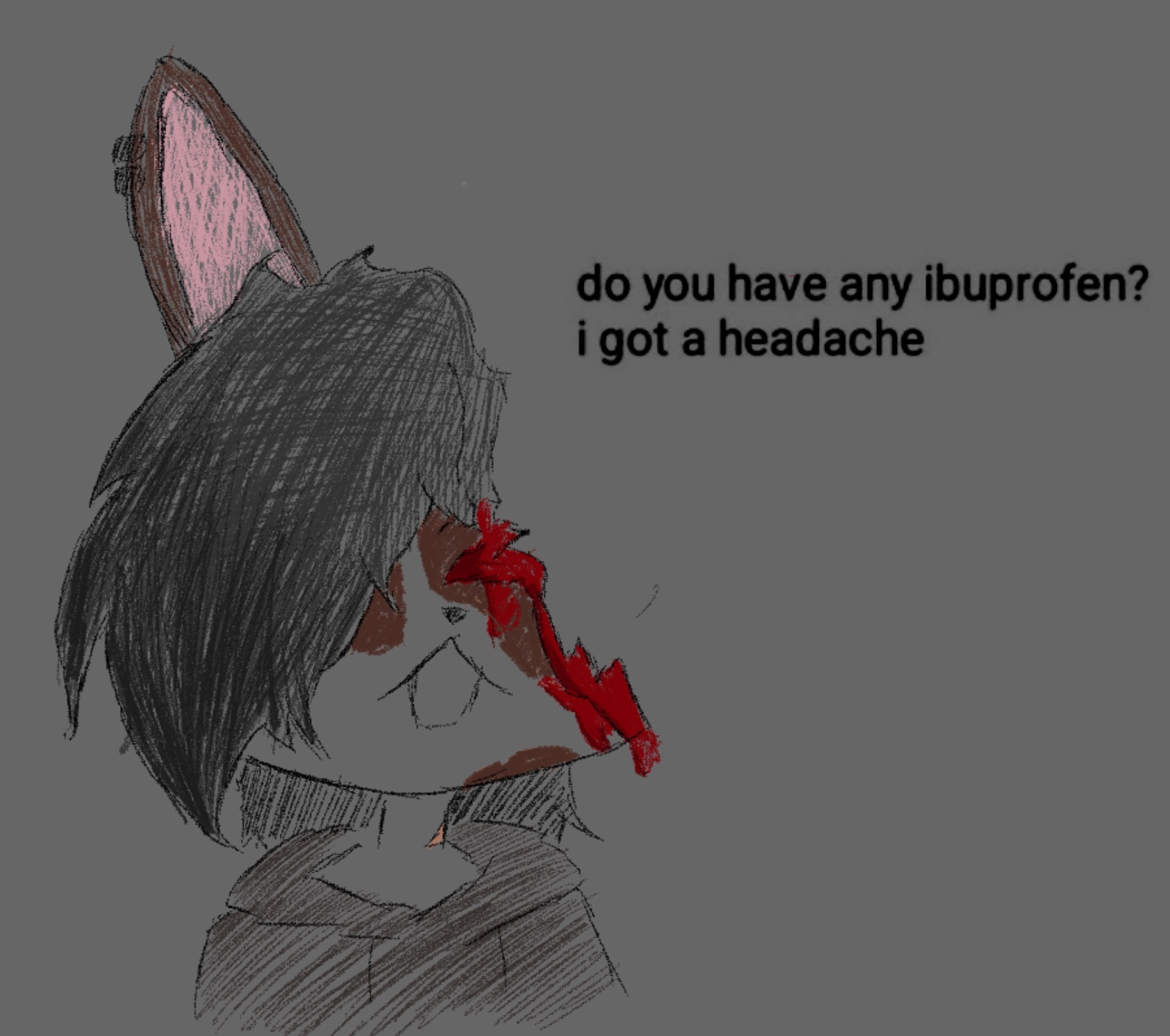 >>82188931He hangs around some rough crowds here and there, so scuffles aren't a particularly rare occurrence for him. Ear got bitten off, there's a scar on his neck-- Fun stuff!