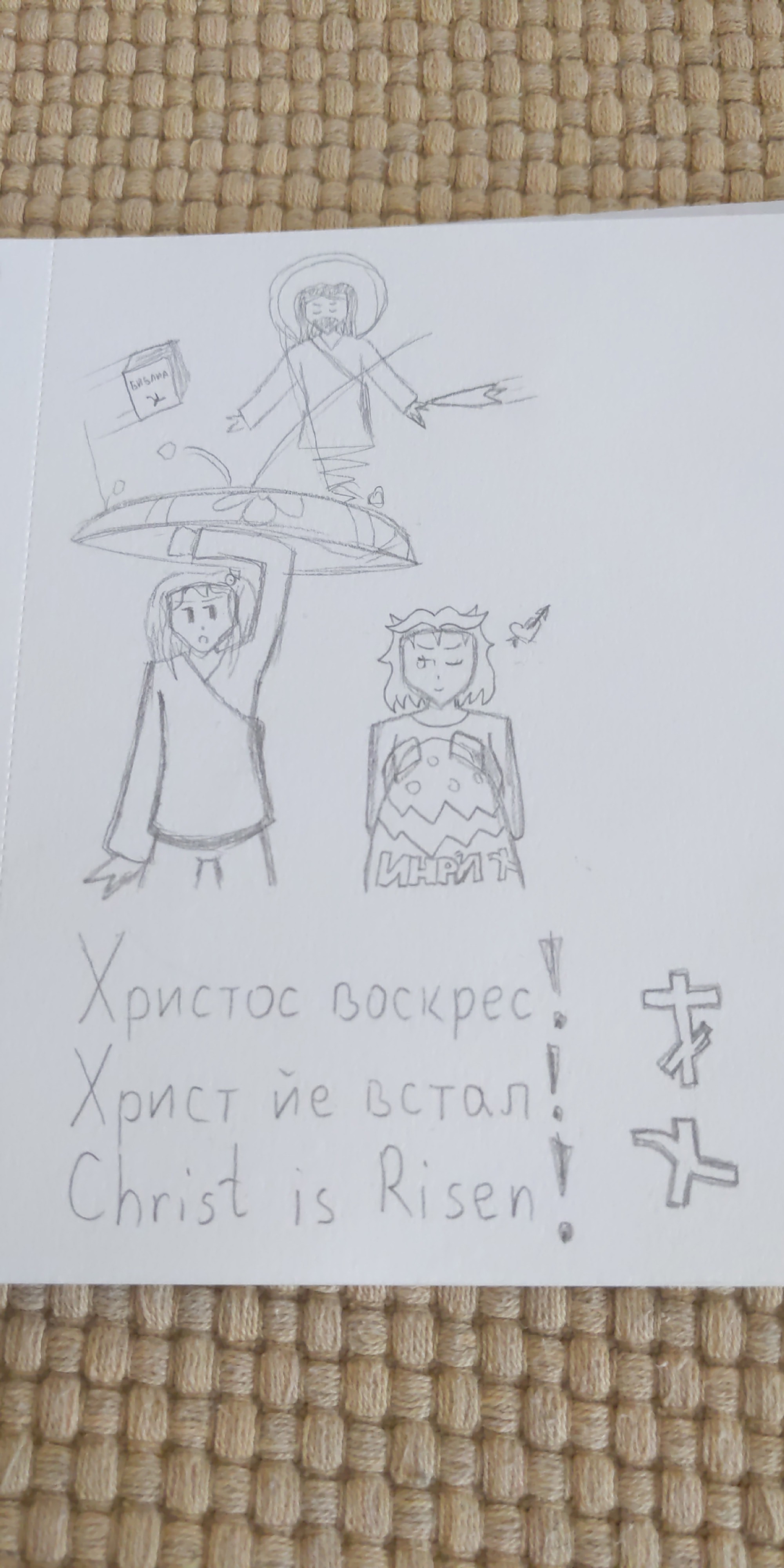 Happy Easter Sunday to Orthodox folk!Some art is in order :)Also fun fact: Kwirkyzstan has its own branch of Orthodox Church, sort of based on Russian OC but might also be its sort of movement. You can see the KOC insignia underneath the Russian Orthodox cross