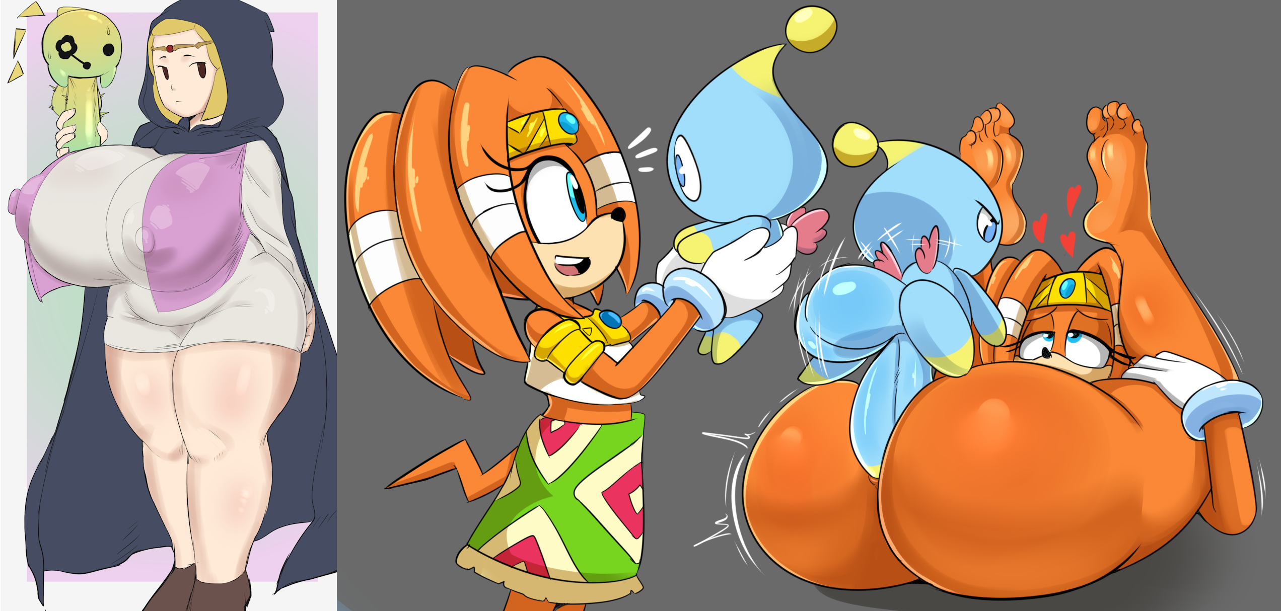 >>82159241Requesting Zelda from Echoes of Wisdom drawn with the same body type/general artstyle as the left, getting her ass fucked by Tri(also pictured in the left image) with a disproportionately large cock and balls.