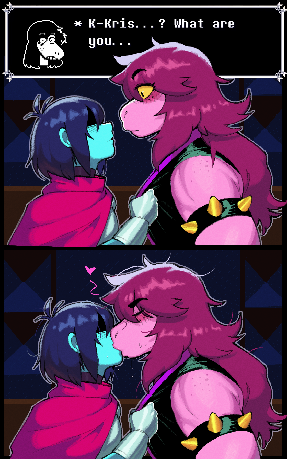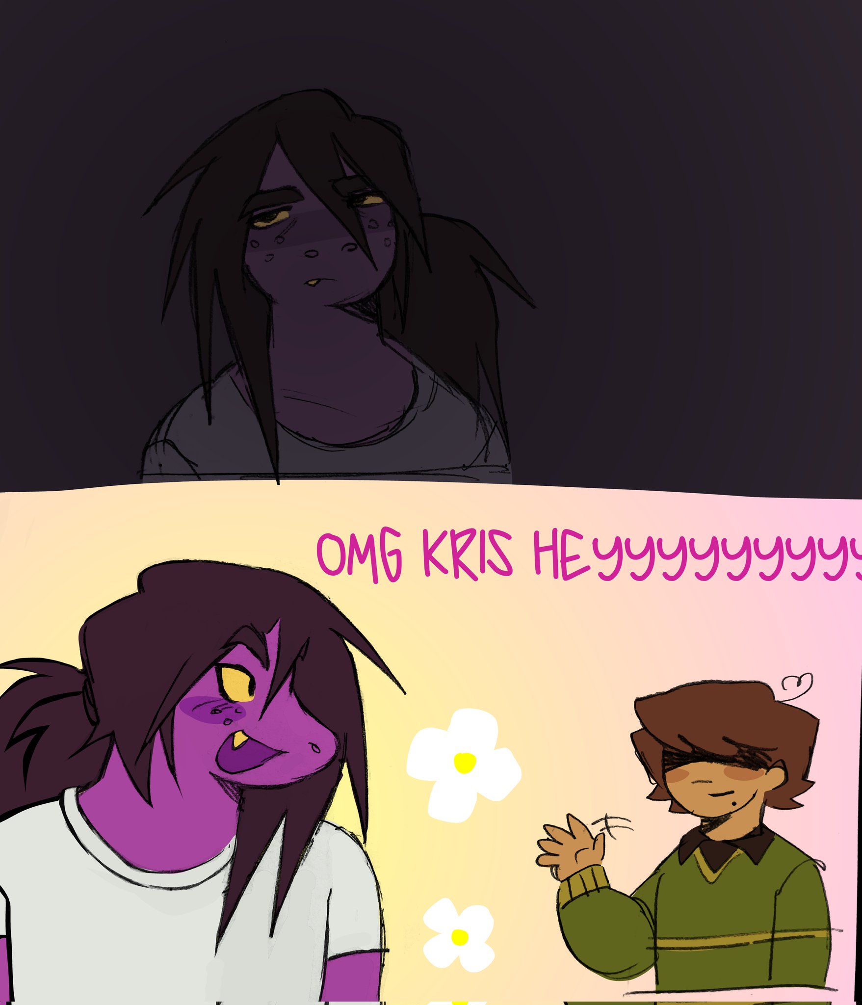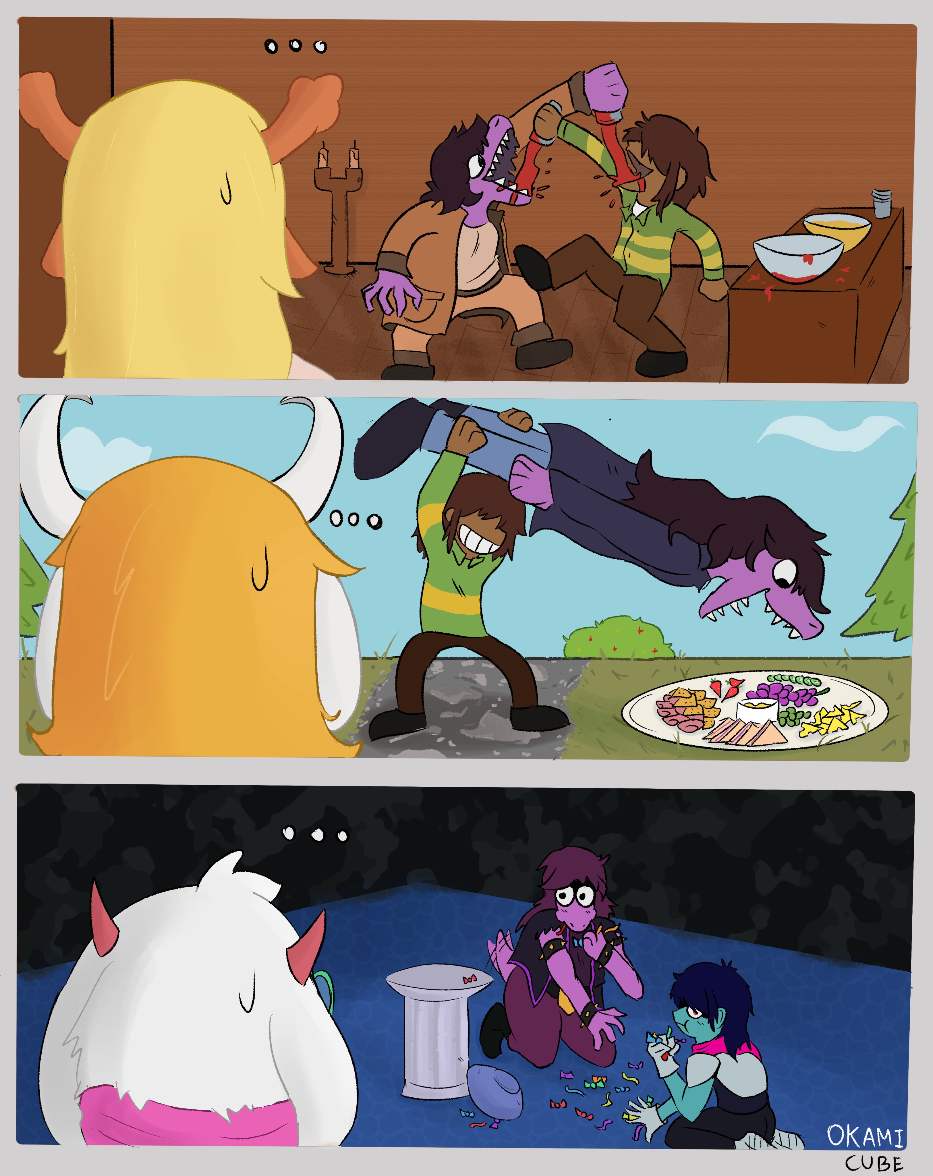 >>82183292It's a shame that Noelle isn't as throwable as Kris and Ralsei. She'd probably do something dumb like "protest" or "scream".Also yeah, that look Susie's wearing in the last panel is NOT one that I'd want pointed at me.