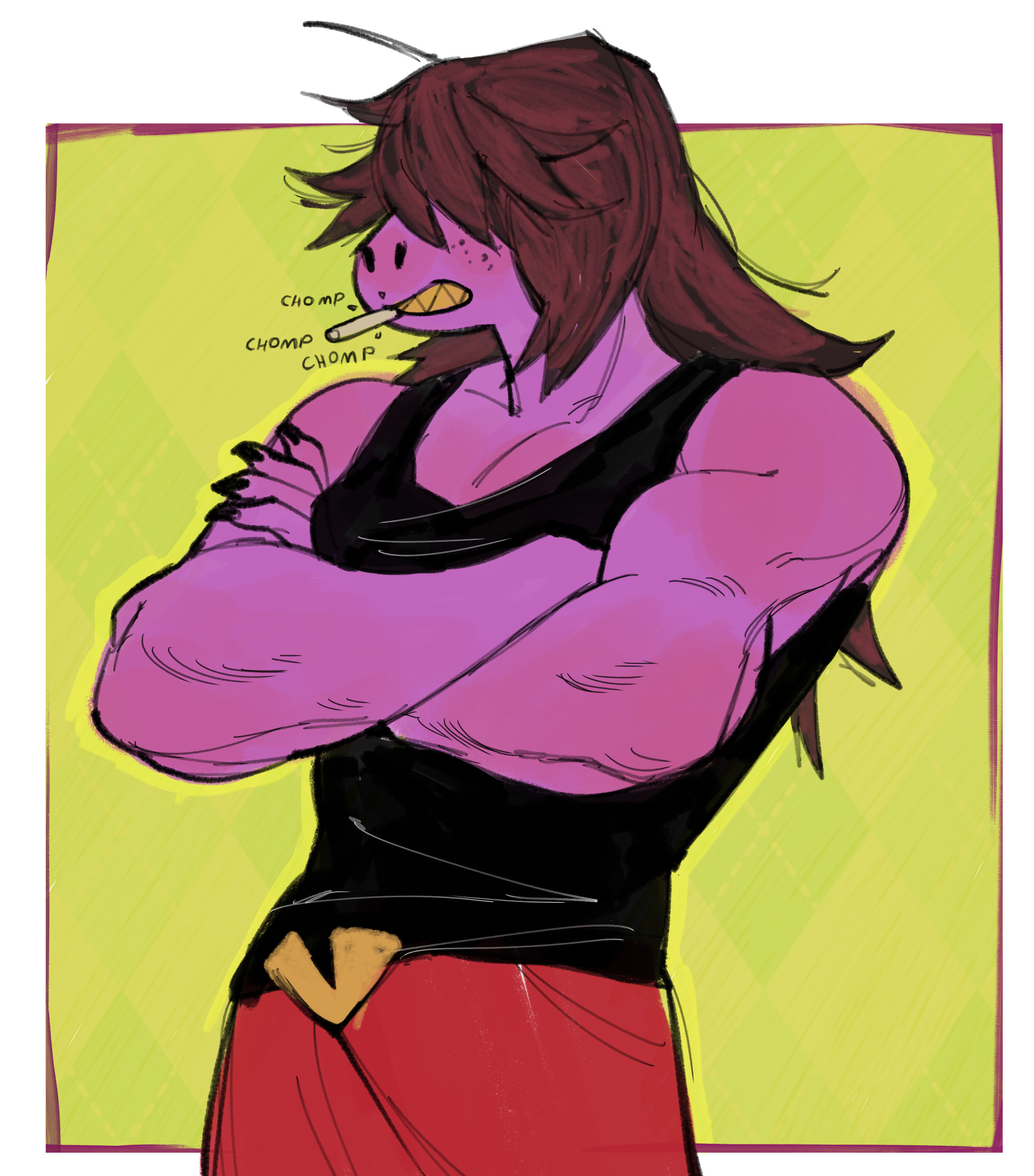 I'll admit, I'm afraid I blab too much and wish I could be one of those cool, stoic artists that just drops new art and a few comments. It's something to fix, even if I like talking shop as "me.">>82189819You're welcome and that means a lot to me!>When I color I feel like I dont get how to fit it into the drawingBelieve me, I get it. Sometimes I think "did I really spend all that time learning how to draw lines just to have colors steal 90% of the show?" It's why I started with washed-out colors and such initially before ramping up the vibrancy and saturation over time. It's really all about studying and going out of your comfort zone over and over again. Eventually the lines and colors learn to dance without stepping on each other's toes. I still have a lot to learn though. I think my worst issue is inconsistency.That said, I've loved some of the colored stuff you've done before, even the simple monochromatic ones. You've got a good eye for value and composition. I can't find this one drawing you did of Susie in her date outfit, but I always thought that looked great too with her red jacket and all. You're a peak artist, Jell. I don't think we're ready to see you embracing rendering more lmao.Also I thought you >>82189462 were fridge at first haha. In relation to the current topic that's a good thing I'd argue. I love his colors too.