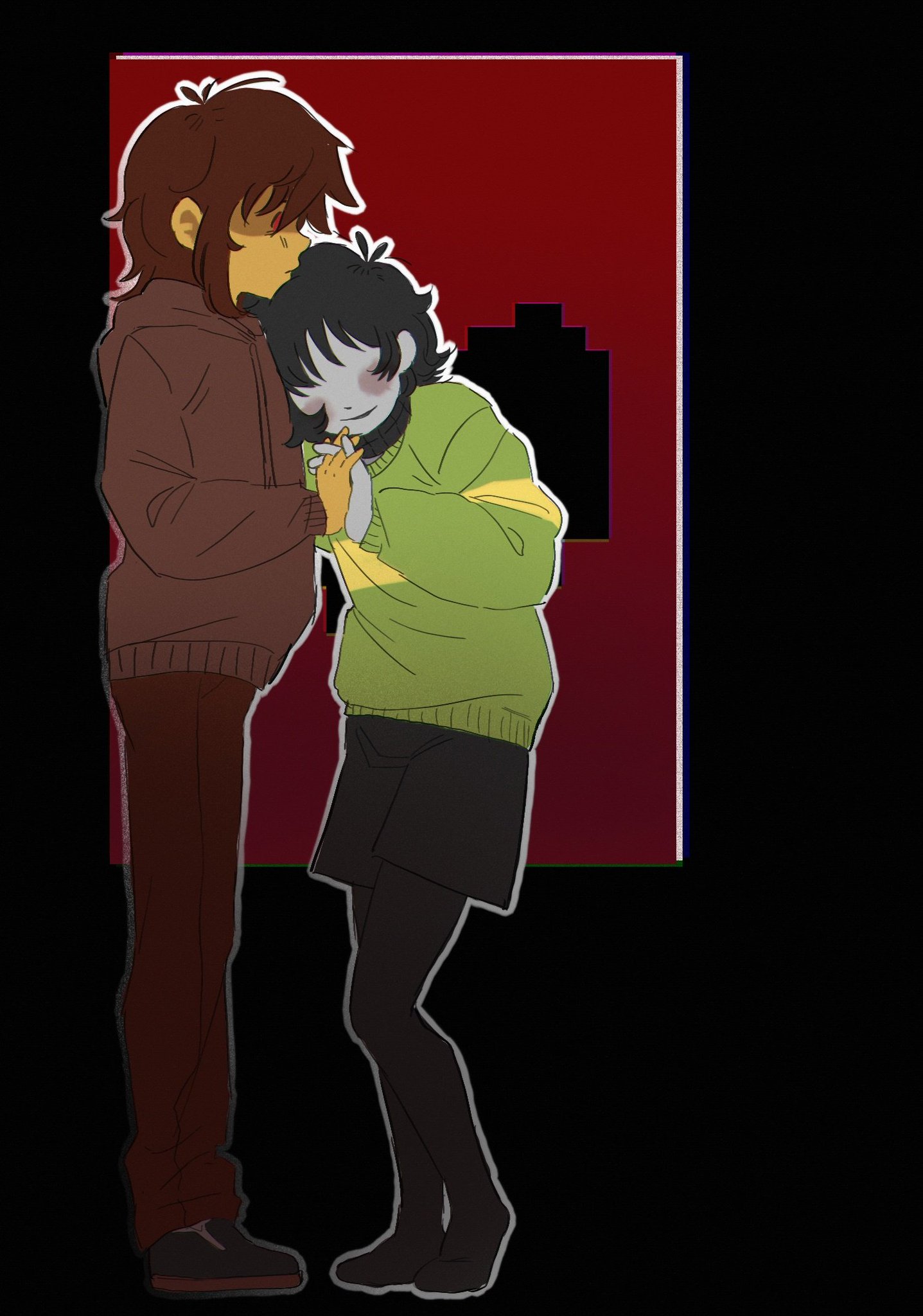 >>82160724>Kris and vessel facing each other, swords crossed>Kris is frowning, glaring a bit, while the vessel is smiling, but there's an edge to it>They're both tops...