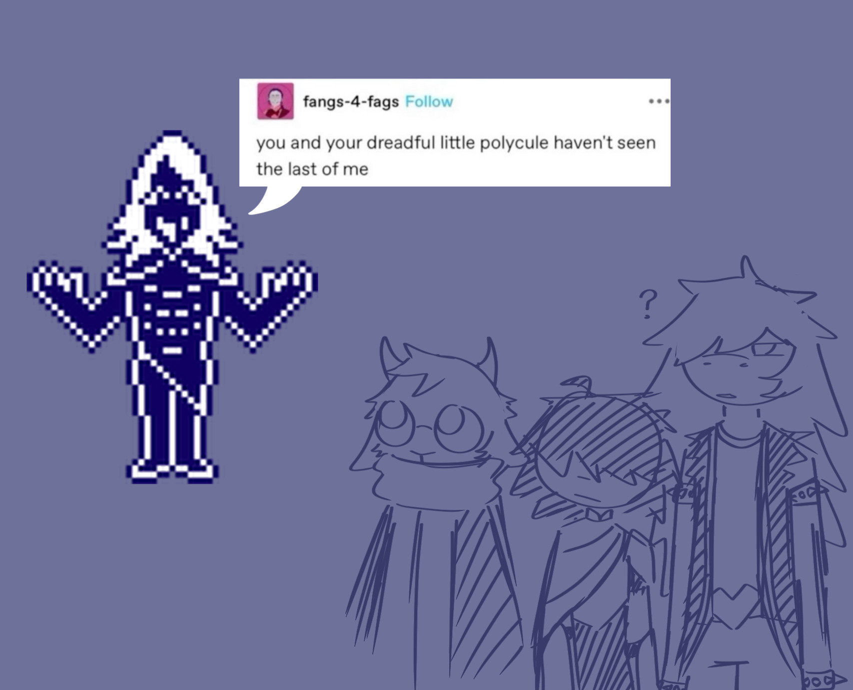 >>82179148I feel like going to tumblr for ut/dr discussion in the first place is where you went wrong. I feel like the only reason anyone would ever go there for deltarune discussion is if you're just really into spamtenna