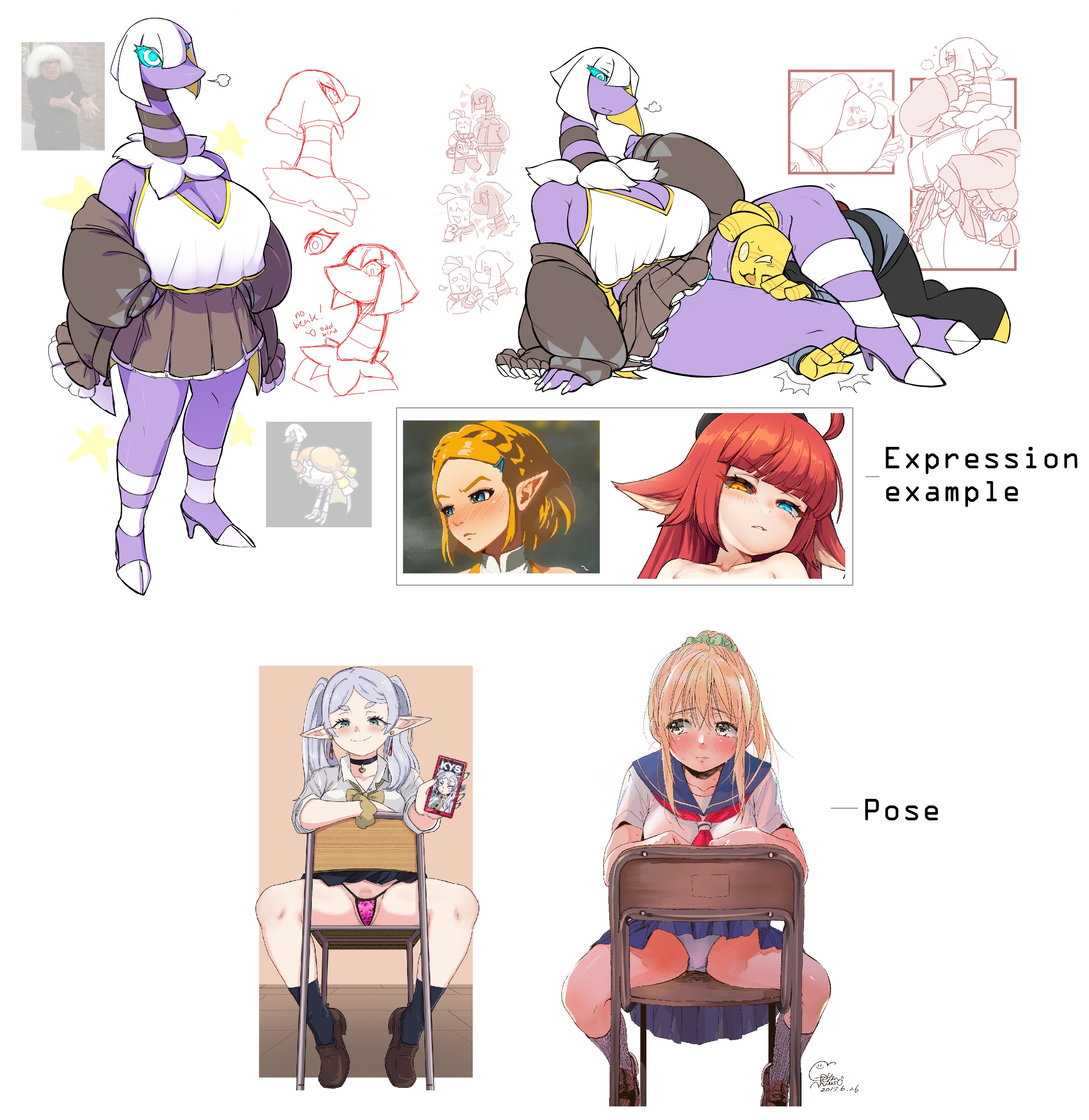 Requesting this anthro Espathra sitting on a chair backwards with her legs spread, showing off her turquoise panties or pussy.I'd like her to be looking at the viewer with a stern look, seemingly annoyed, but she's subtly into it.