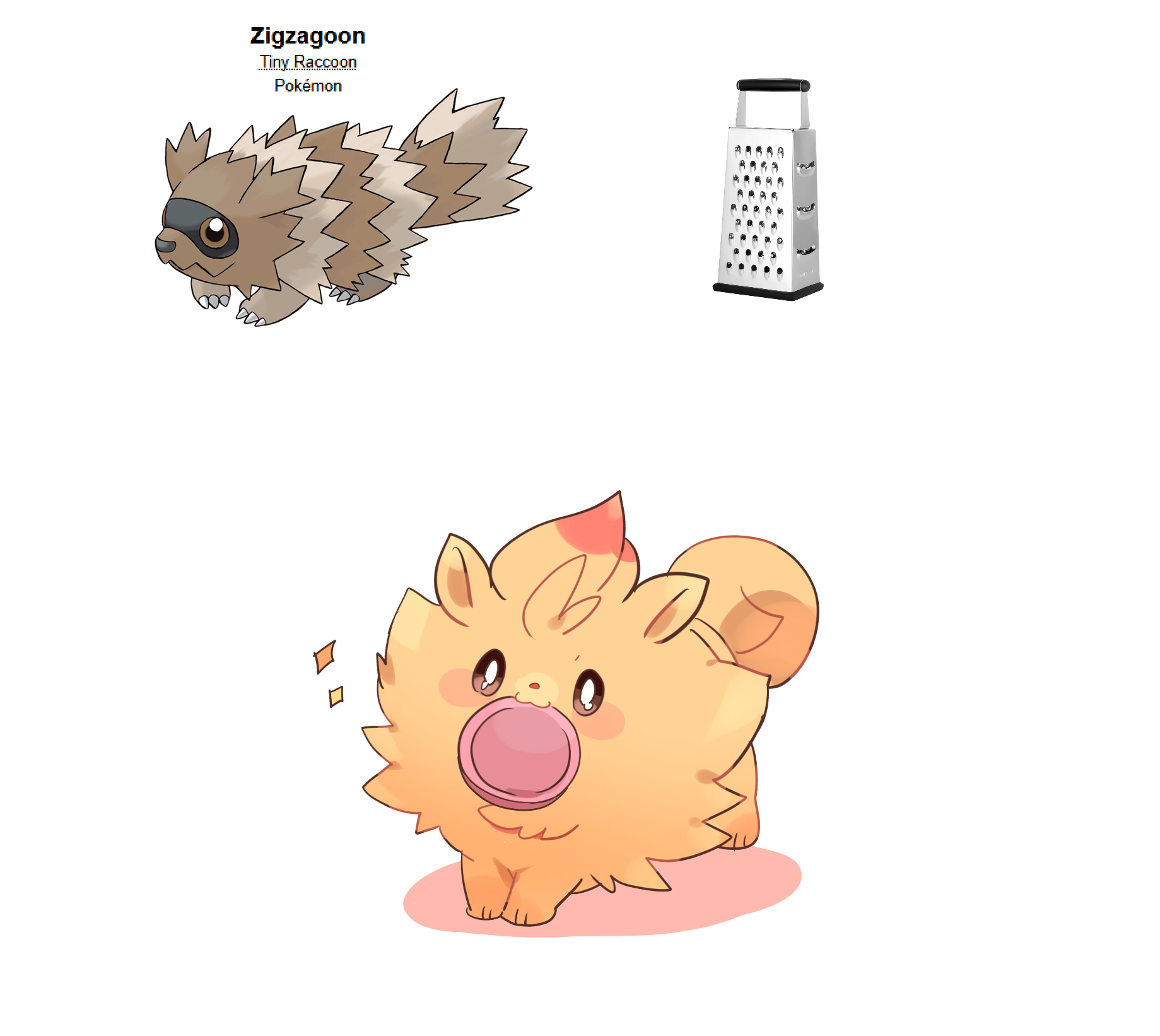 Requesting a Zigzagoon naively holding a cheese grater by the handle with its mouth.