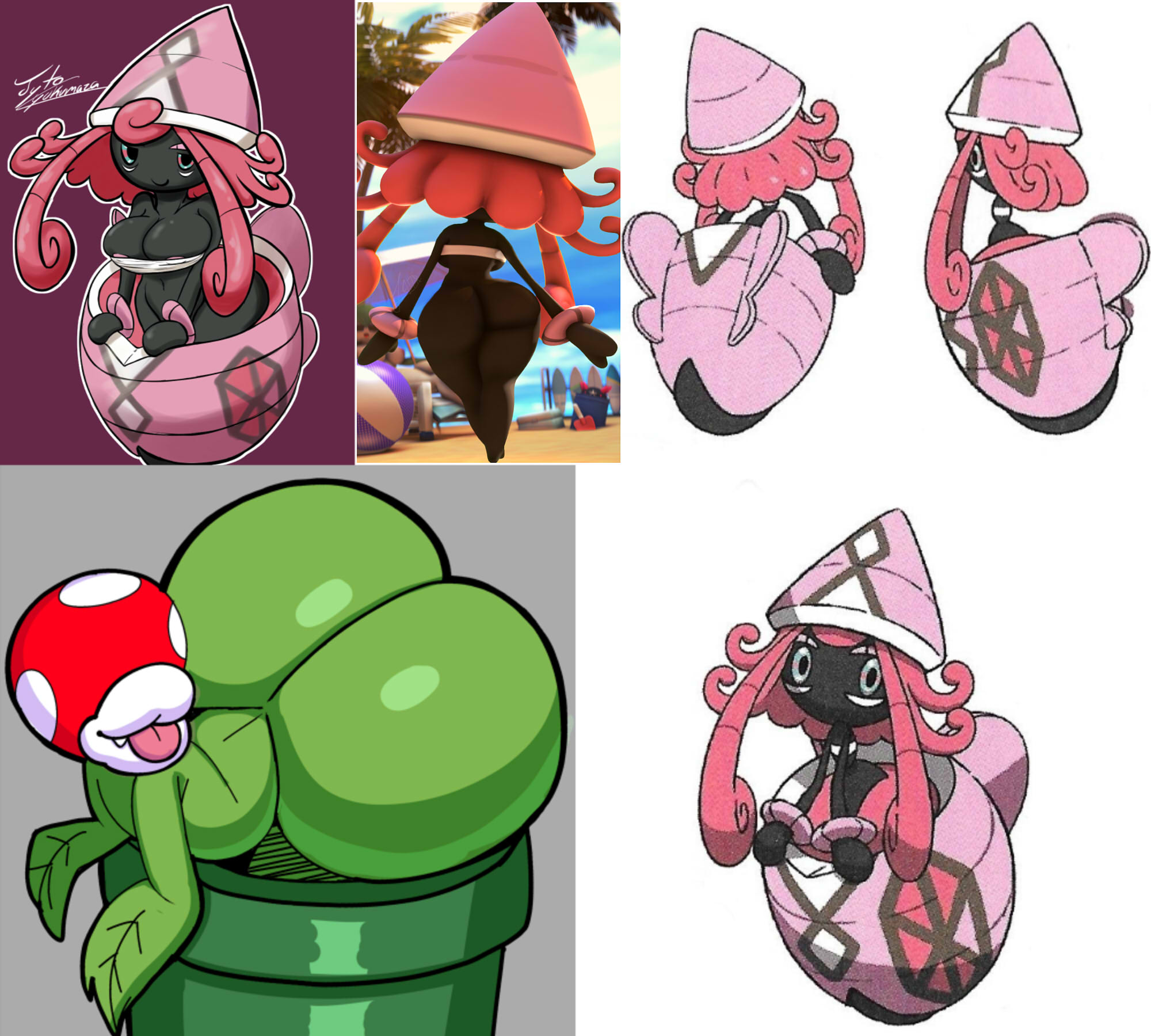 Requesting Tapu Lele showing off her big bubble butt like in the reference. If possible, her legs should still be inside her shell.