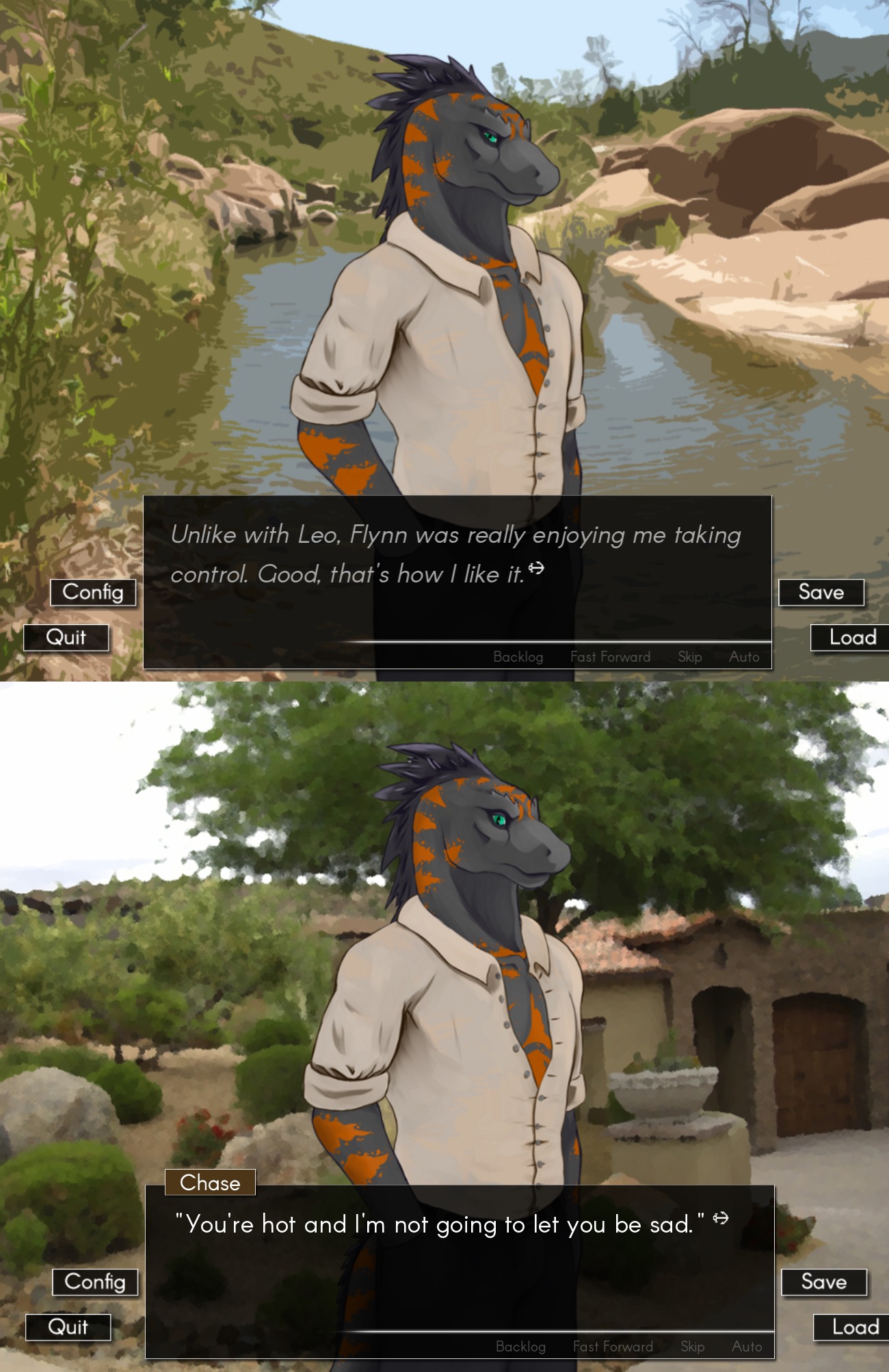 >>82274171Honestly most of the time even if something is a "Chad MC" in gay stuff it is usually a "Fake Chad" like Kieran (ICoE) or Callum (For Himalayan Birkin) that is covering up being a mess (Failure). I mean there is Shibakuro (PoliDog) and Nathan (Beastly Bonds), but they are from stuff that is more game then VN. I guess one can arguably put on the Sunset Angels MC and Dimon too, but that's Straight games.And yeah, Shibakuro and Nathan both bottom, but i see it more as their general demeanor, Genuinely Confident, Driven to get what they want.I'd say Chad from Home Zomewhere Else is a edge case, he has the Chad looks and it is literally his name, but he is still a (cute) failing mess.>>82274171Anon, i get what you mean, but face the facts, he is canonically a weeb, gets beaten up by a malnourished kid and his sister just takes the worldending relic from him without a fight he obnly becomes a "Chad" in one of the endings, and even then you can arguably read between the lines in a way that it seems like his "Assistant" is the one calling the shots. His Harem is fake and Berno is the only one who seems to like him for him (after a bad first assumption).