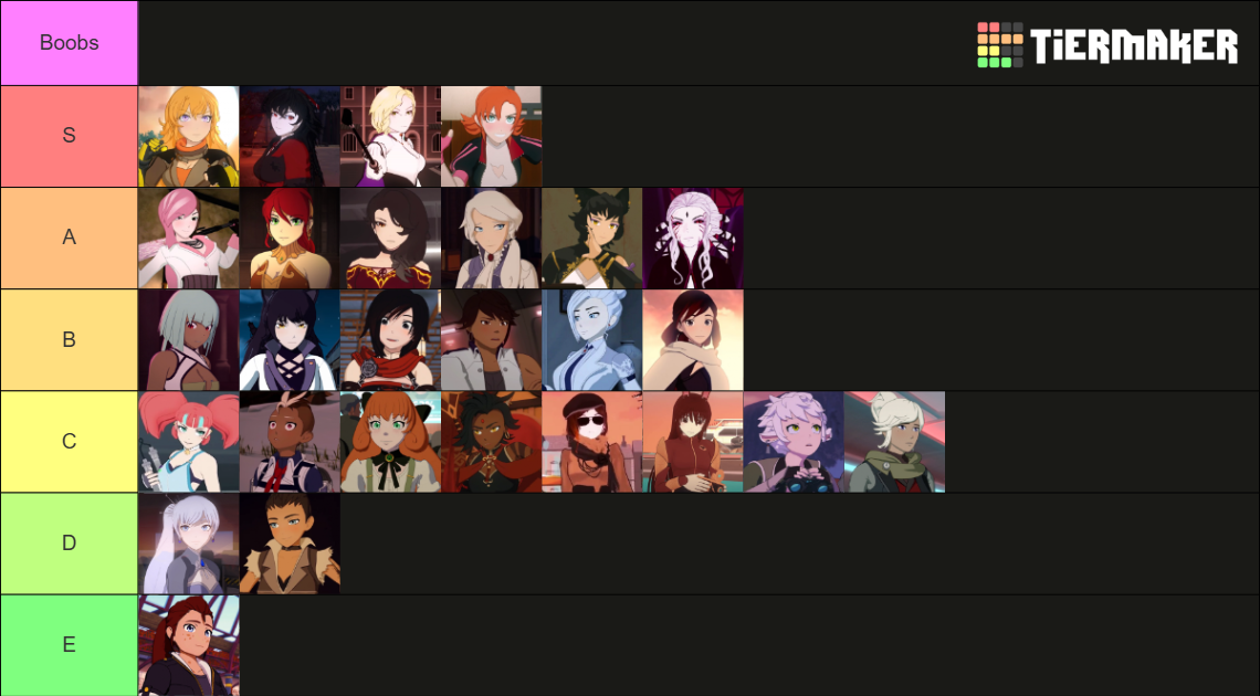 >>82213926>Weiss>AShe should be a B. She's never been really that flat to be an A.