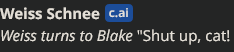 >>82226380>Blake doesn't deserve either of them.Yang is almost as abysmal of a character as Blake, what do you mean?