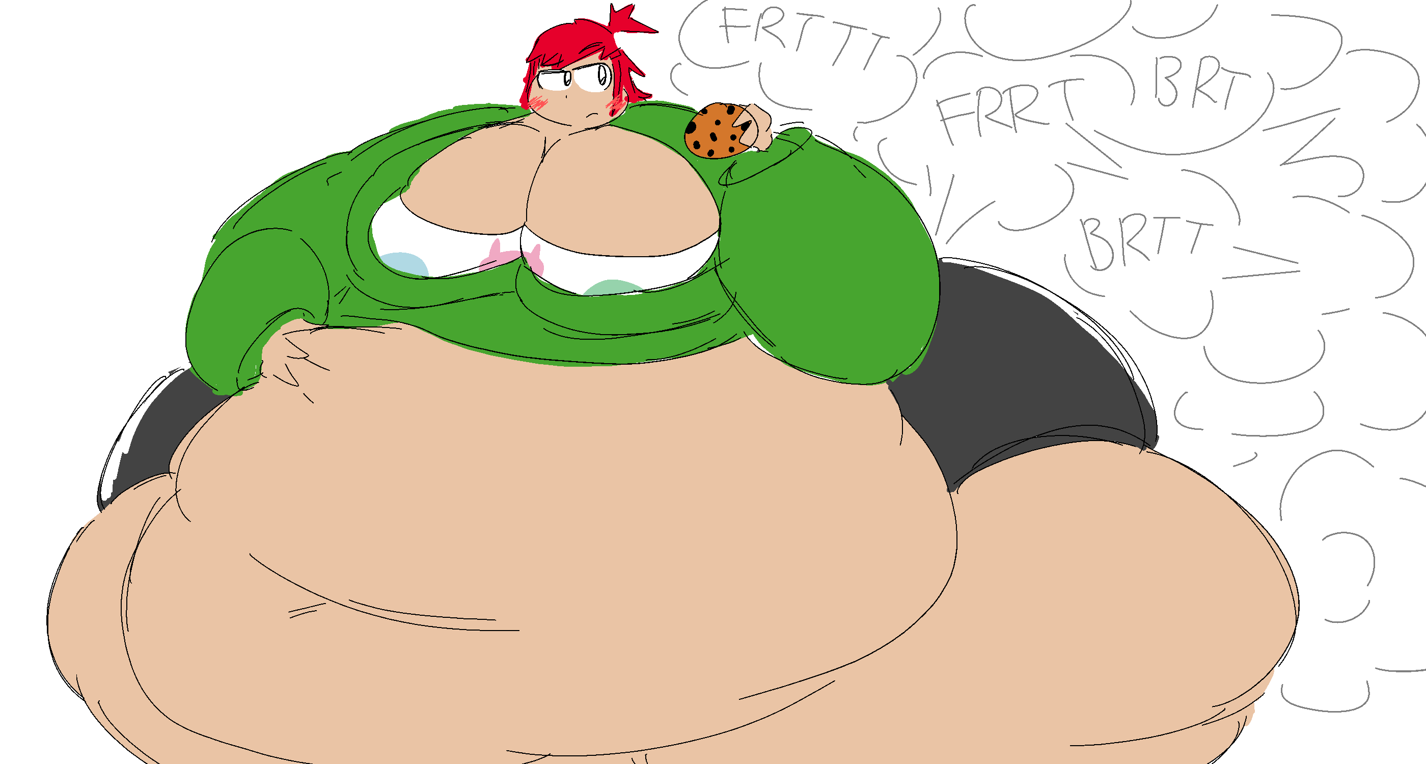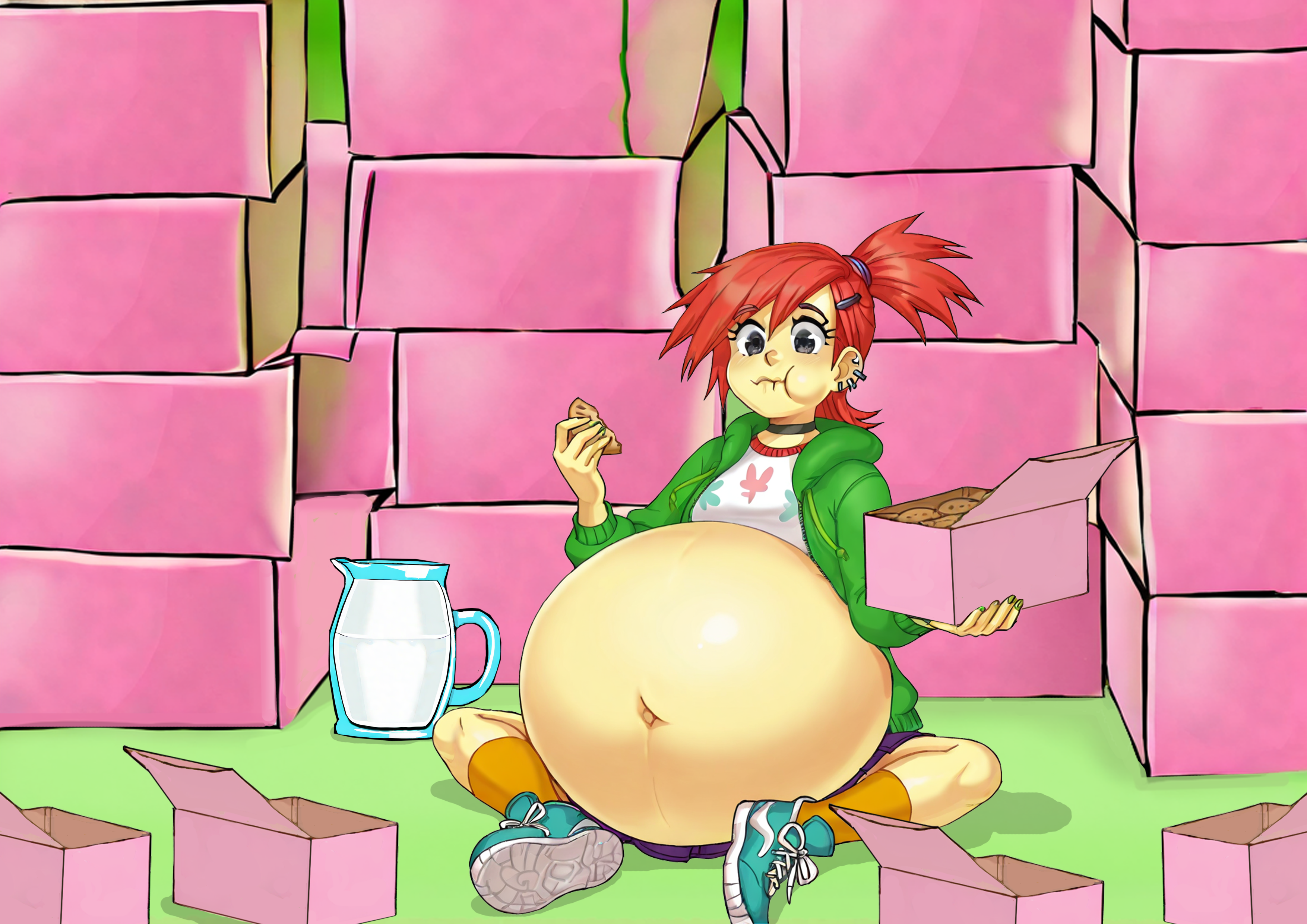 Wouldn’t shock me if she ended up drowning her sorrows with more milk once the cookies ran out. And yeah there’s no doubt in my mind that she ends up gaining a decent amount of weight after one of these binges in general. So if it was a year round kind of deal. Well good ol’ Frankie would be more fat than a whale I’d wager. Also you can never go wrong with a gassy fatty. Because they’re pretty damn hot.