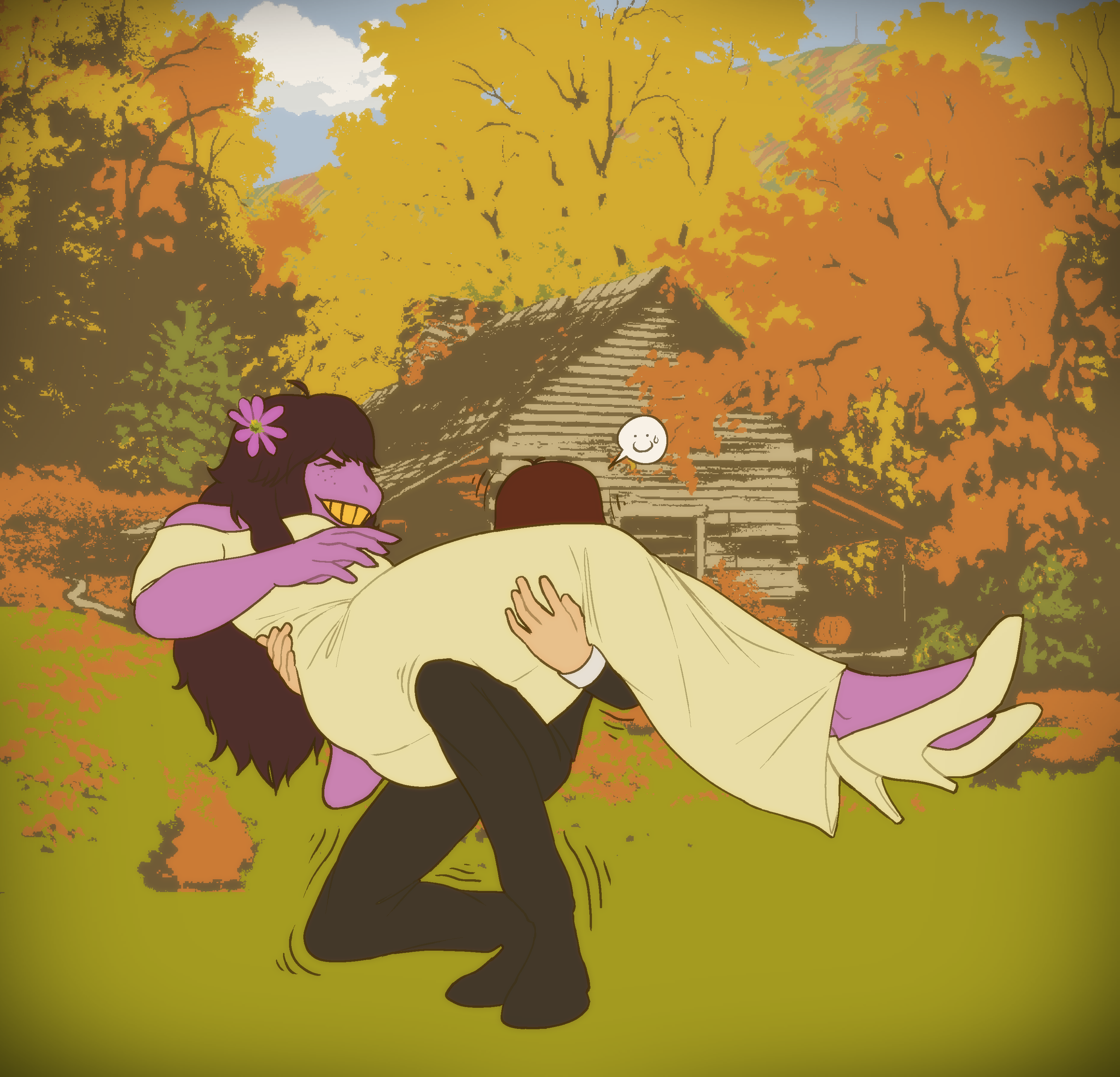 >>82264360>The Field of Pink and Gold>The vast garden is charred in an inferno of jealousy.Not a lot to go on, but Susie and Noelle have pink and yellow icons in battle respectively. Some of us in /doe/ thought it might be about conflict between the two of them regarding how Kris has been acting, since Noelle said she noticed Kris has been different lately and Susie disagreed.