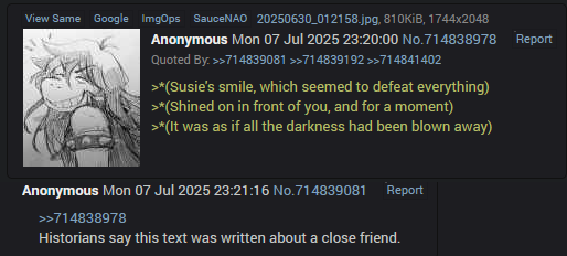 >>82263203It's surprising that /sus/ hasn't picked up a threadshitter getting pissed off at OC that doesn't fit his narrow view of canon.