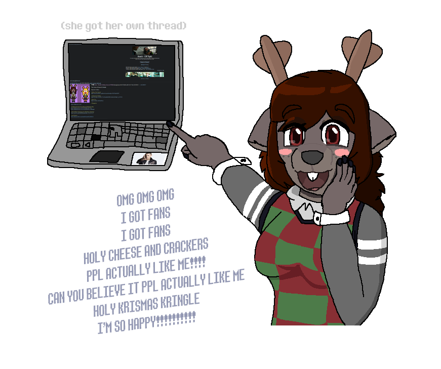 >>82263203I know you’re just shit stirring but still, not exactly joke art, it is comedic but in the “character totally believes it to be true” type of way. Plus Veth is our beloved creation who can do…little wrong.