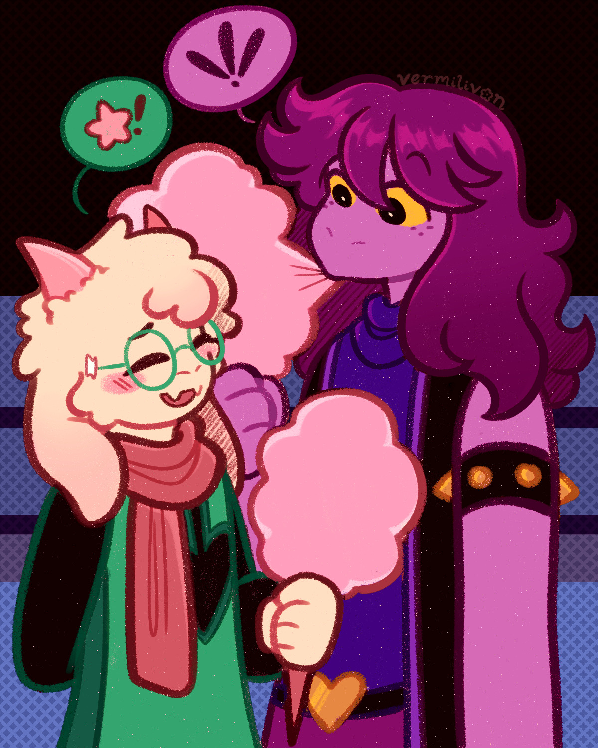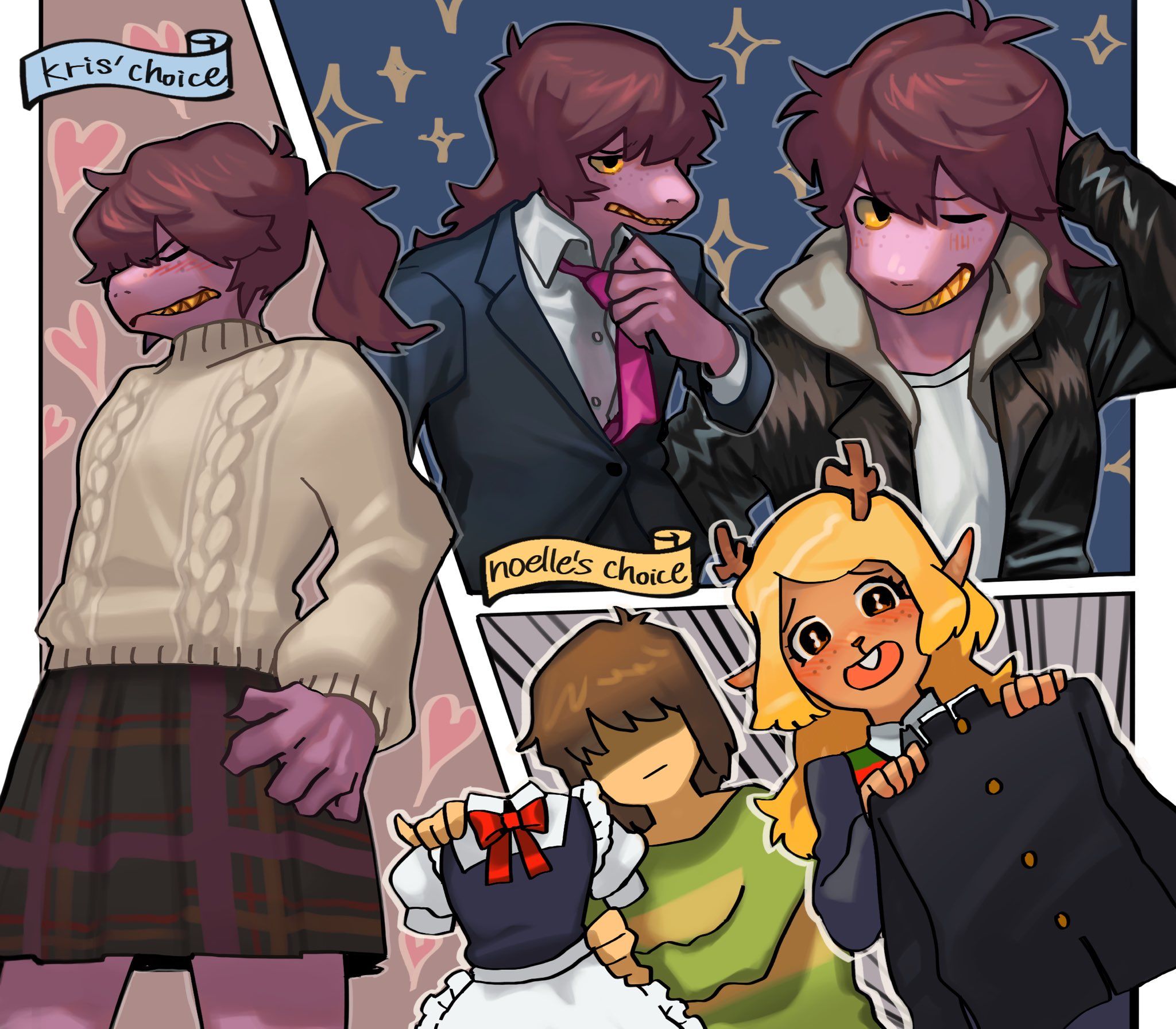 >>82264360Going off the three most immediately important individuals related to the Festival, Kris, Susie and Noelle, it could be as simple as the tumultuous conclusion to Noelle's ongoing jealousy over Kris and Susie spending time together, this being a recurrent theme as far back as Chapter 1, at odds perhaps with Susie's unwillingness to exclude Kris all because that's what Noelle wants, owing to them being her first real friend, the entire reason she's changed as a person and also just her original first invitee for it. Ralsei being second. Basically:>Noelle wants Susie for herself>Susie wants them all there>This becomes a point of contentionI don't entirely believe that Noelle's obsession is meant to be played for laughs quite like 90% of the fandom thinks it should be, at least not to a certain point, but it's perceived that way since she's willing to share the information with Kris in confidence. She knows she's very weird and admits only Kris really knows it too.