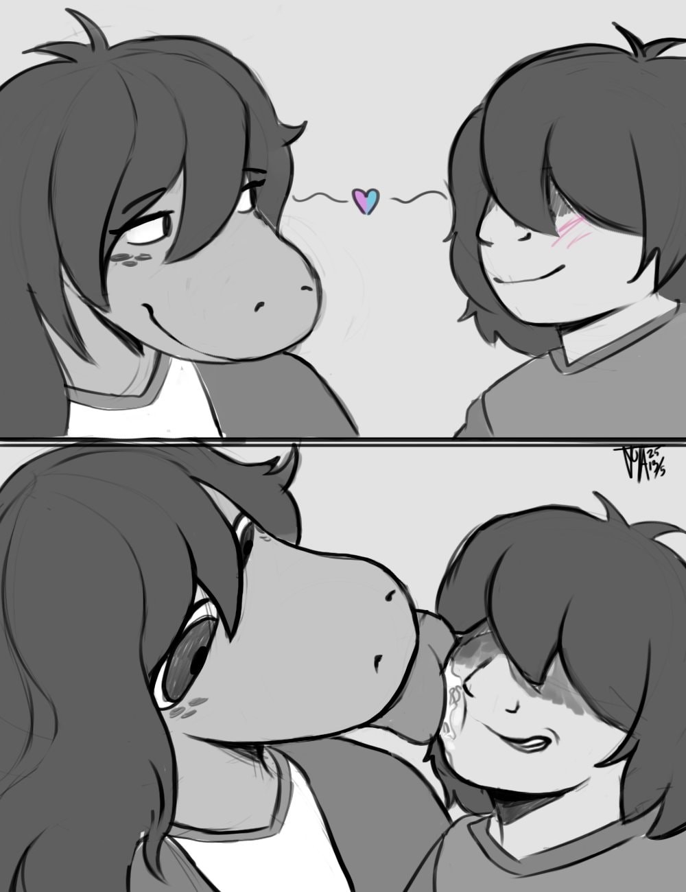>>82283846Honestly, I like the idea of both of them being so head-over-heels for each other that the oral instantly breaks the dam for the other.Kris loves going down on Susie. He loves her languid groaning and the puffs of smoke she lets out every time he hits a sensitive spot. His eyes roll back when he feels her claws on his scalp, her fingertips switching between an iron grip and gentle stroking through his locks. He loves hearing her raspy voice dip into that rich sultriness when she praises him, tells him how good he makes her feel, how much she loves him. The grip of her womanhood, the wetness of her walls and every tender, warm, wet fold of hers gives him life. He savors the contractions on his lips as he gets a heaping mouthful of her, his tongue writhing in her pulsating fissure while his head pulls back to give her more than enough suction to bring her over the edge of screaming ecstasy, and by the time her juices have soaked his chin and chest, he's already painted the bed with white, viscous ropes.Susie loves going down on Kris. She loves seeing his cool, calm composure break down. She loves how tender and soft his skin is, and how delicate it feels under the glide of her tongue. Nothing makes her heart flutter more than bringing her hand up to his chest and feeling his heart in a fevered race against her own, beating against her palm while he salivates and moans. His flavor, his scent, his delicious sweat overfills her senses and it makes every muscle in her big, strong body quiver. Almost as much as Kris' turgid, trembling penis after she'd had the hours upon hours or playtime she needs with it. To savor it. To bring out more of Kris' sweet, mewling cries. She particularly loves to tease his frenulum with slobbery, suckling kisses. And squishing his glans with her lips. And tickling the very tip with her tongue. And engulfing it all the way to to the hilt so she can taste every inch and every drop that comes out of it to the tune of his airy cries.