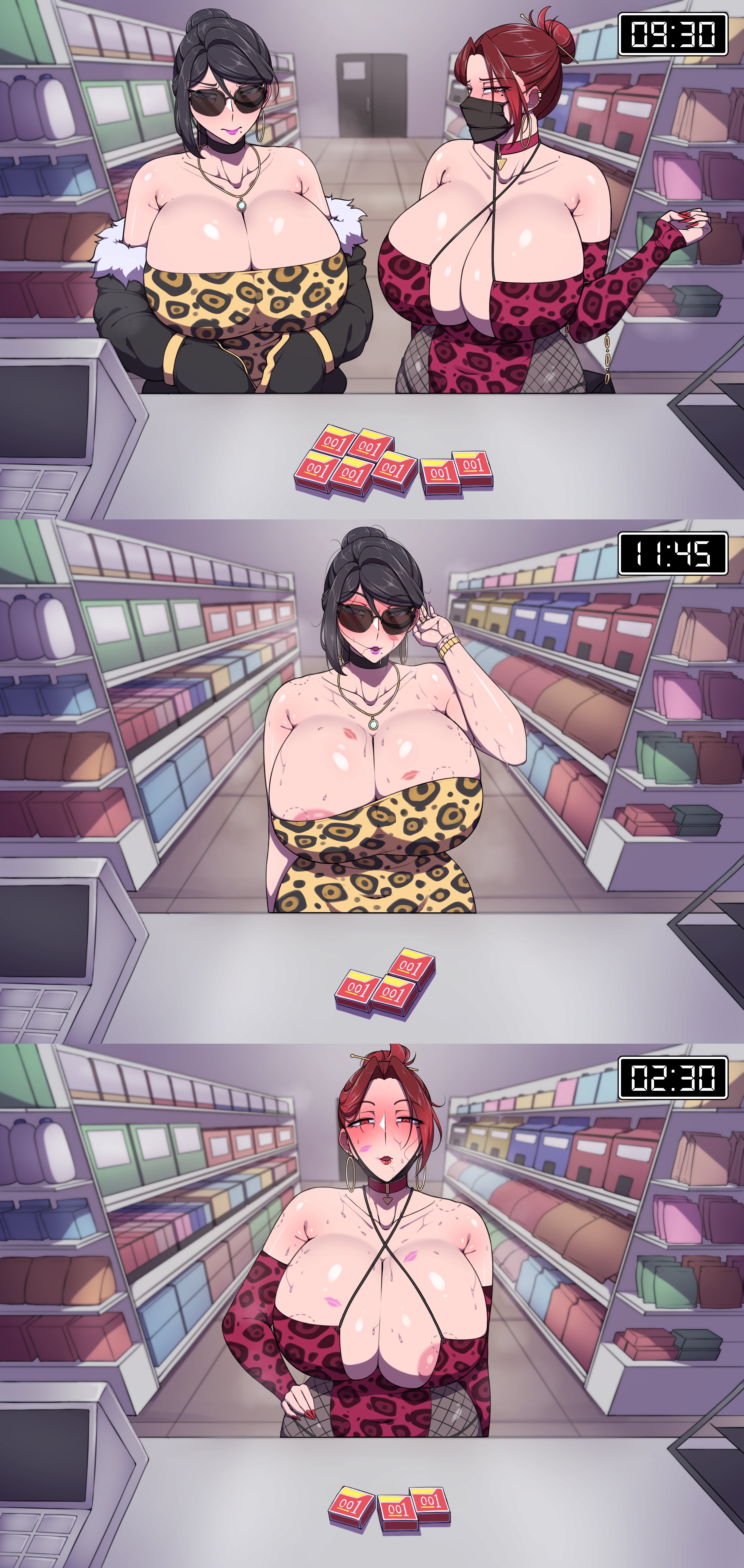 >You work at a convenience store and these women who look familiar keep coming back throught the night...
