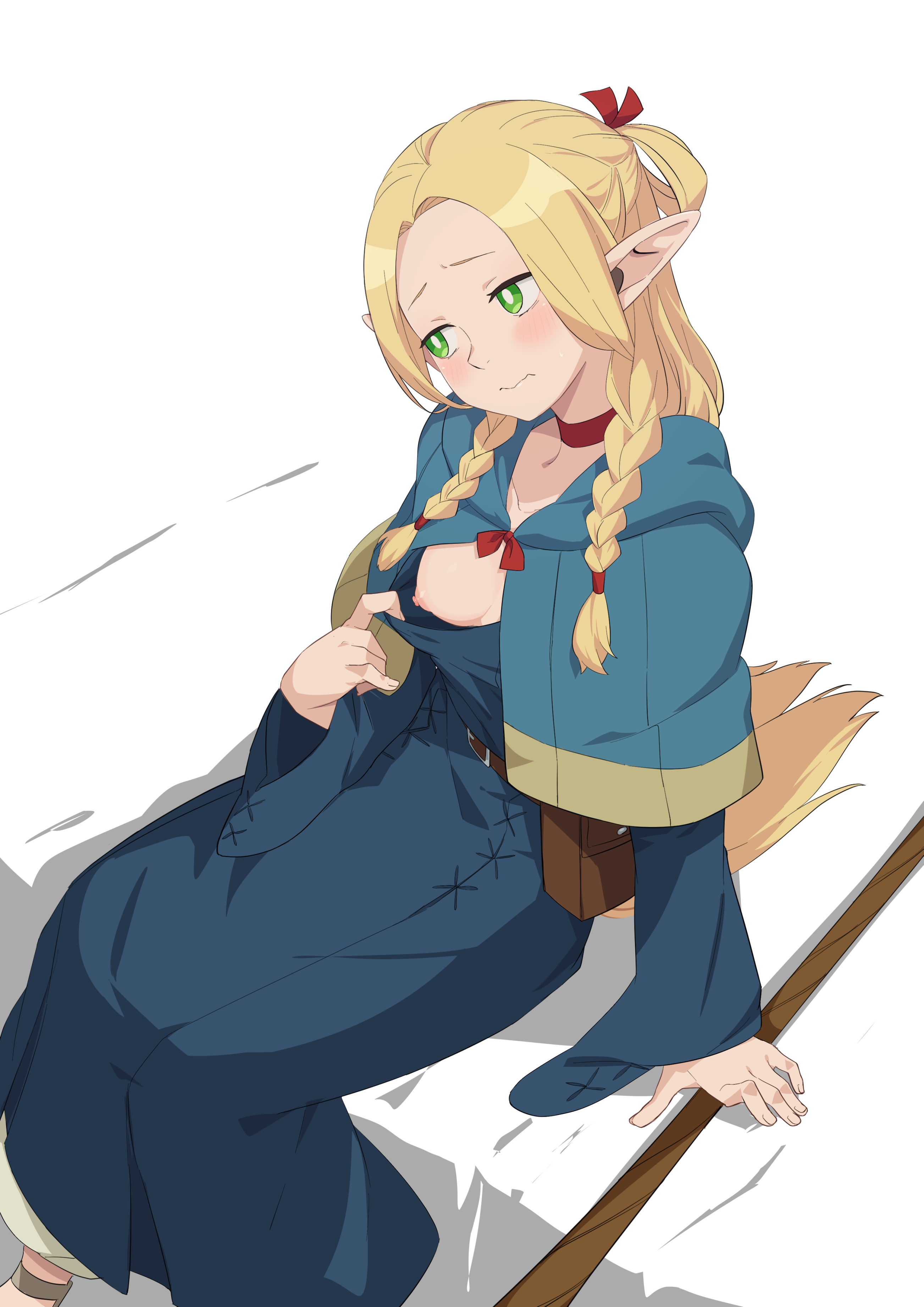 >>82260225Talking to her first to help her relax, making her comfortable before guiding her to lie down and spreading your half-elf wife's legs open...