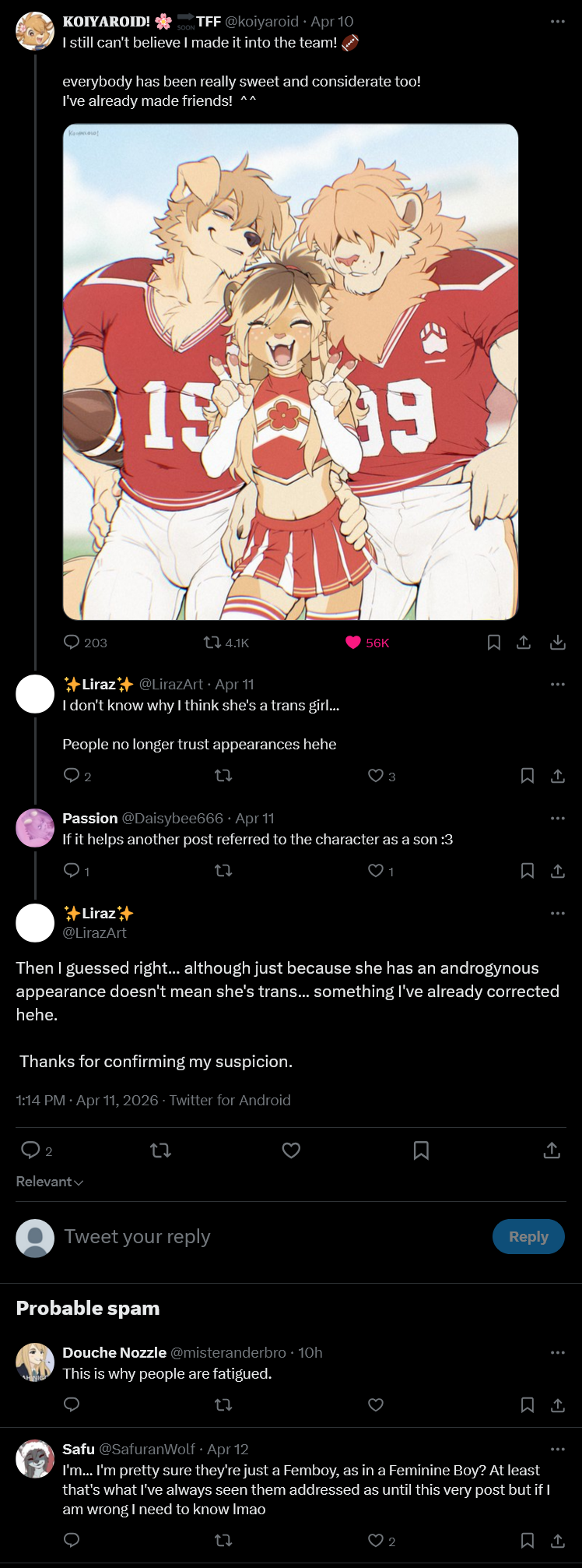 >>82287454>>"My character is a Trans Man"it's a fetishI really think the worst thing is when these freaks will draw a female character and just label it a TIF for no reason or because they drew just a little bit extra fuzzy fur on the arms or stomach