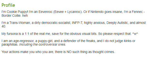>Furries. They only think about themselves.