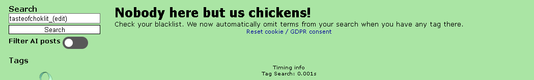 >>82285582on another note.the tasteofchoklit_(edit) tag has been purge out of existing by either chok requesting rule34 staff to deleted all of it or mods just preventively purging it for no reason