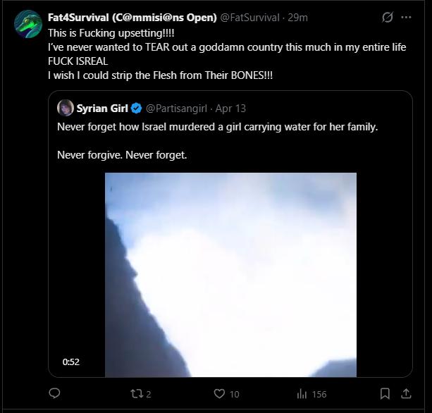 >>82271557very much a big fan how the average twitter artist believes that quote tweeting videos of kids getting killed in a foreign war will be beneficial towards their cause of showing how 'le bad' it isnot like i could just develop my own opinion on it without needing to see that :^)