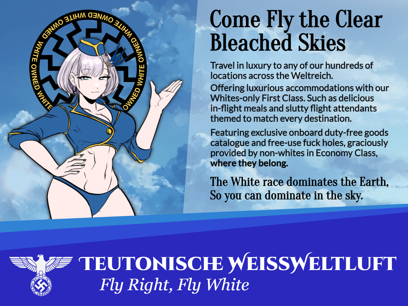>>82278928Nazi symbols, declaring love for white men and begging for white babies are the best ones.>>82279289The you can take your blog posting and fuck off to a thread you enjoy. Cause it sure seems like you don't like it here and you aren't contributing. Typical jealous third world wars. You see the great things white people make and instead of joining in and following along you feel the need to tear it down so it's the same as your shithole.