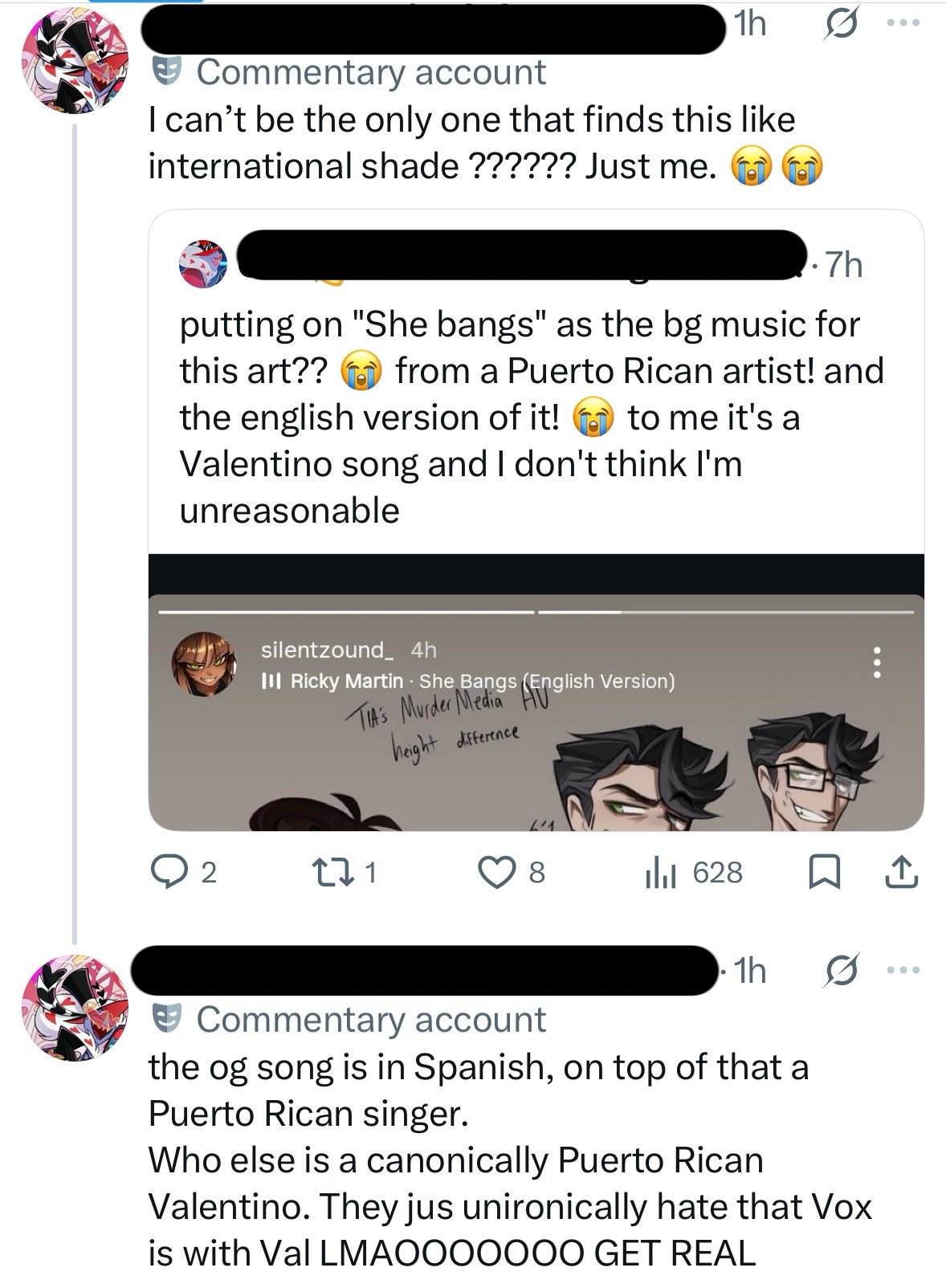 >>82285326No, it is retarded to give a young character an attribute that irl is just depression. The showmakers are hyper-libtards so they think asexuality is just another sexuality of the great diverse colorful mix of sexualities and it is cringe how desperately they infuse the woke sexuality cult into the show and make characters anything but hetero.Octavia will find her happiness and open up to intimacy. The same with Alastor.