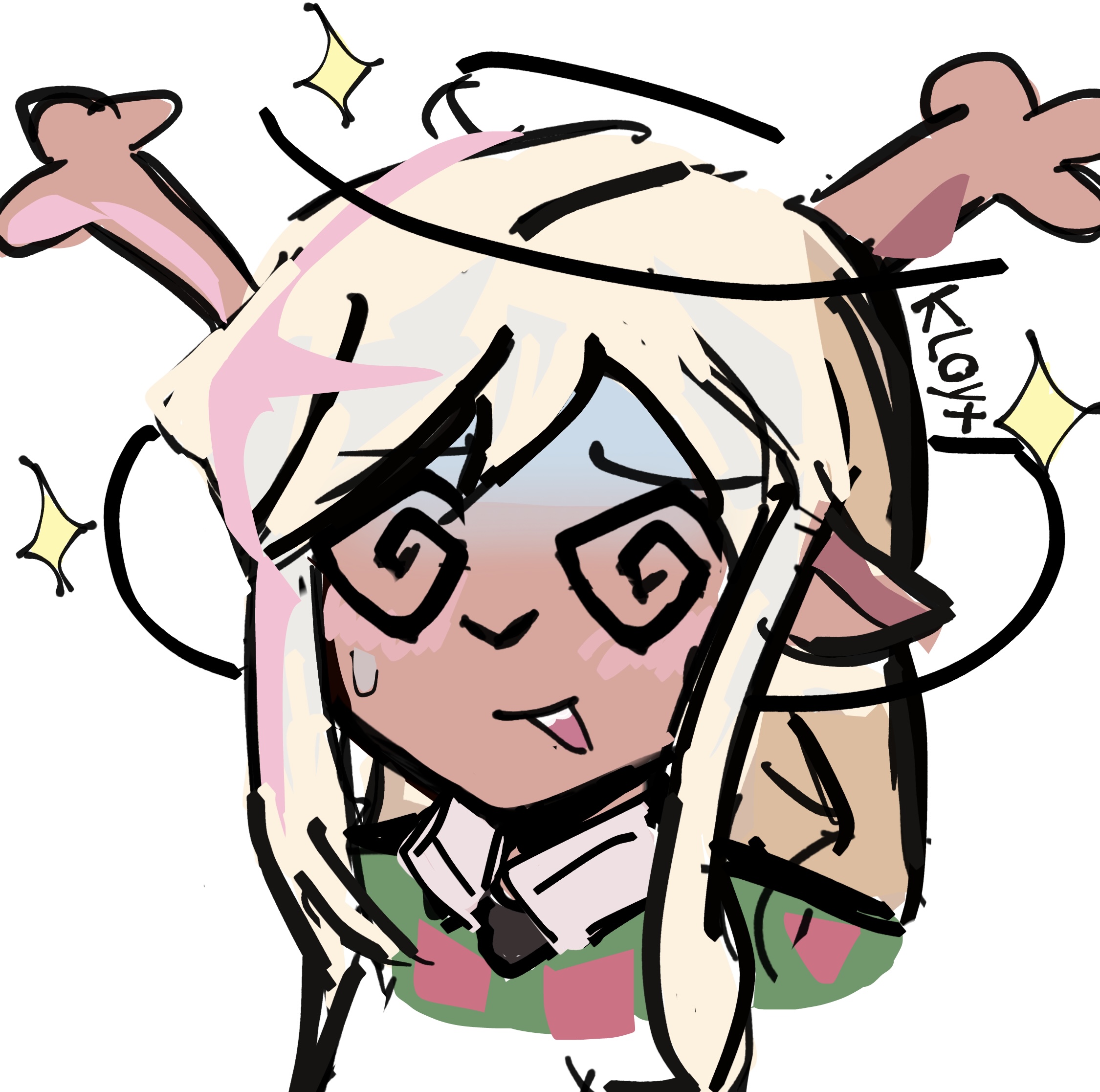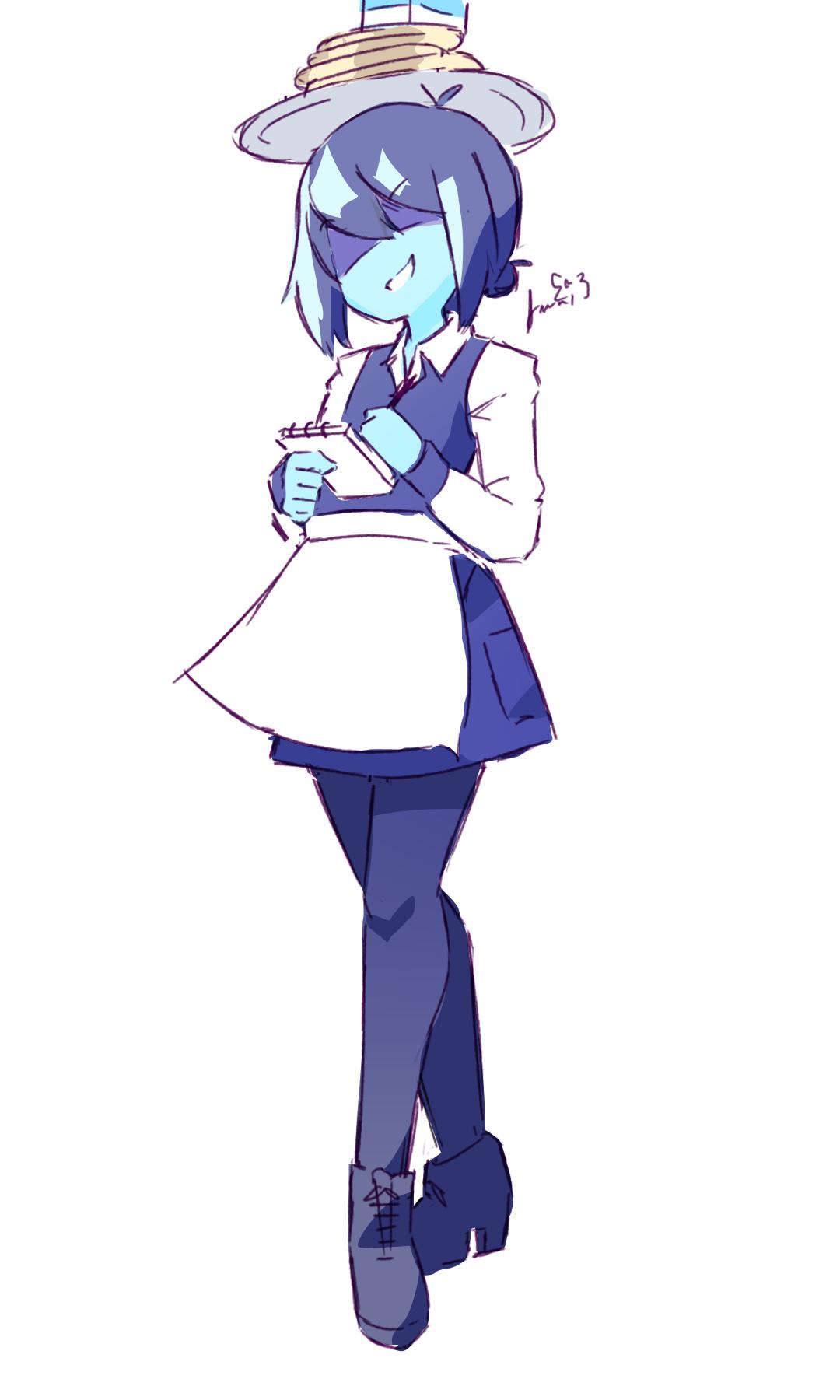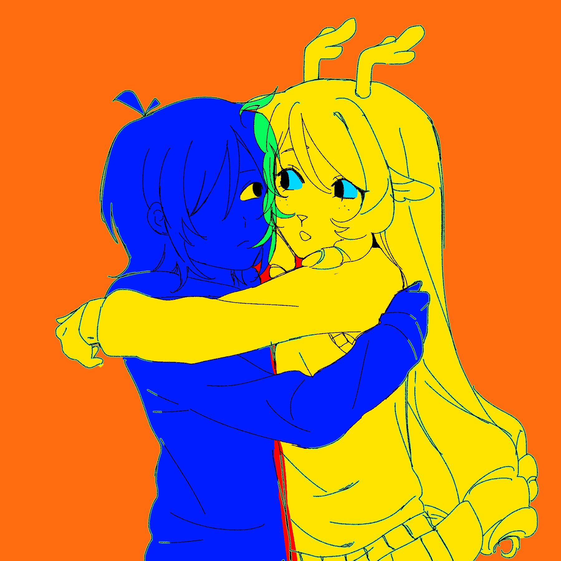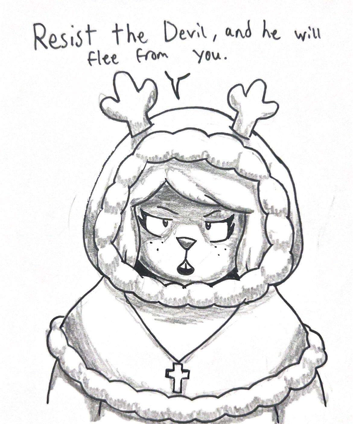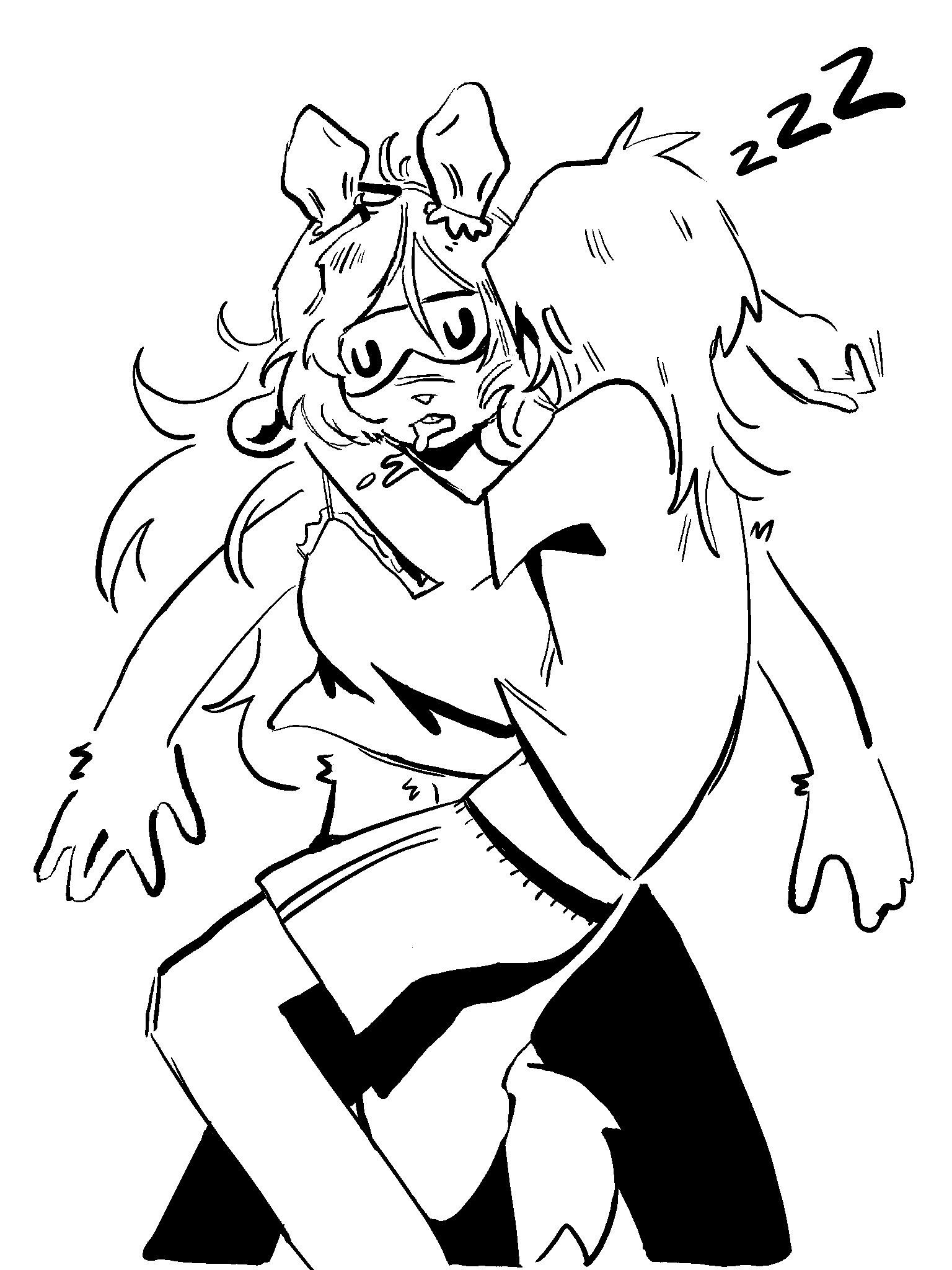 >>82292559...and the digital color version. Both her hair and antlers are black, her jacket is of a drab green with a sleeveless black undershirt. As for the rest, I assume she is wearing denim shorts with rolled leg cuffs and what appears to be highly-customized Chuck Taylors; indicated by the round brand seal on the "heel." I don't think he ever indicated a color scheme below the waist, so that's all conjectural on my part.