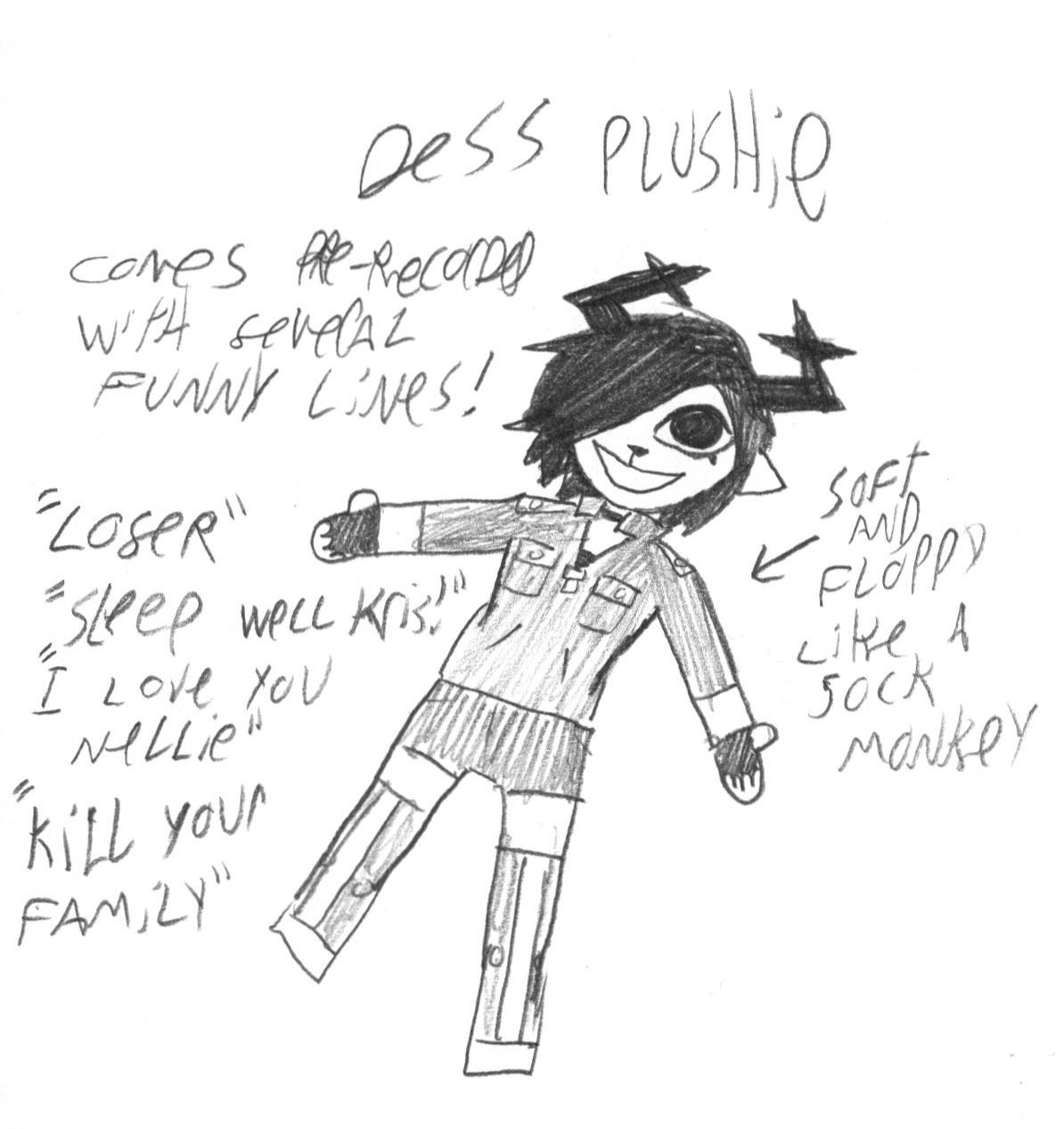 >>82290567Alright /doe/, I need your help with something.I've decided I'm going to try and make a physical version of that Dess Plush design that Whump made a while back(Pic Related).If anyone would kindly provide pics of that particular design, with color if possible, that would be greatly appreciated, as I'm going to be purchasing the fabrics/other materials soon, and I'd like to get it as accurate as possible.Thank you for your time.