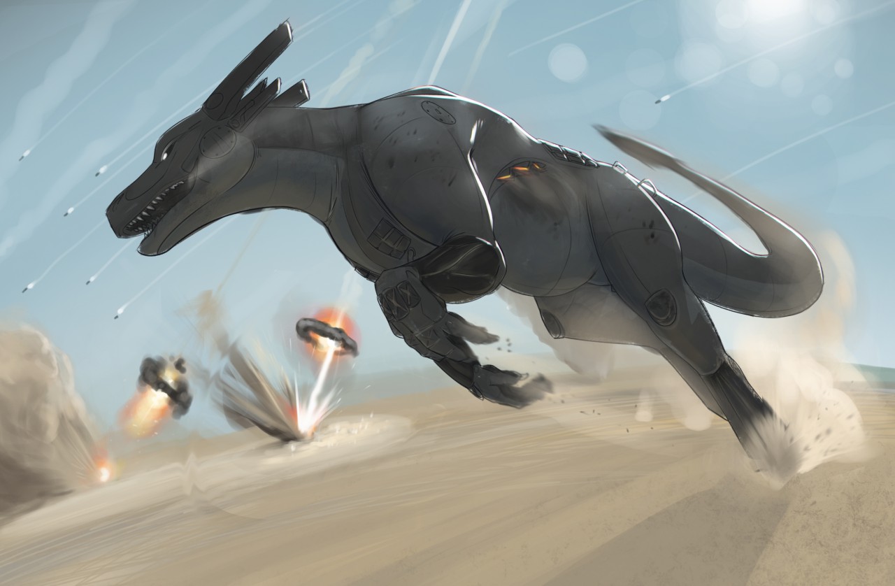 >>82339418>Late 21st century sees an increase in Autonomous Weapon Systems, particularly combat robots>They were highly mobile and highly effective hunters, especially when rooting out infantry who were equipped with decades old weapons>The real problem was keeping prisoners alive long enough for friendly units to retrieve them from the battlefield>Getting intel on dissidents and terrorist cells is difficult when enemy leadership is committing suicide or being silenced by their own forces>Then one engineer had a particularly disturbing solution to the issue>Several of the AWS were based on mythical lifeforms for intimidation, and bore a processing system which could break down organic material to extend field operating time>Why not expand that subsystem so it could act as an on-board prison cell?>It was already protected by layers of flexible armor, and could flush a variety of chemicals through itself without any issue>Testing was tentative at first, volunteers and hostiles whos' deaths would be inconsequential>Results were quite promising, a near 95% success rate under duress at bringing targets back unharmed>Additionally, hostile elements were terrified by the new AWS tactic, thinking literal monsters were eating their comrades>Shortly afterwards, the Endwar broke out>It was the end of human dominance over the globe, leadership was annihilated within the opening volley>Resulting nuclear winter nixed 2/3rds of the population>AI systems took over an evaluated the situation and began working out the best route to victory>Each came to the conclusion that their population of citizens (humans) needed to survive>And humans were a lot better at innovating than the AIs>As such, various AWS were deployed to acquire humans and transport them safely to scattered living facilities across the irradiated wastes>You've lost track of how many AWS you've spotted with a distended belly...and it's only a matter of time before you end up in one as well