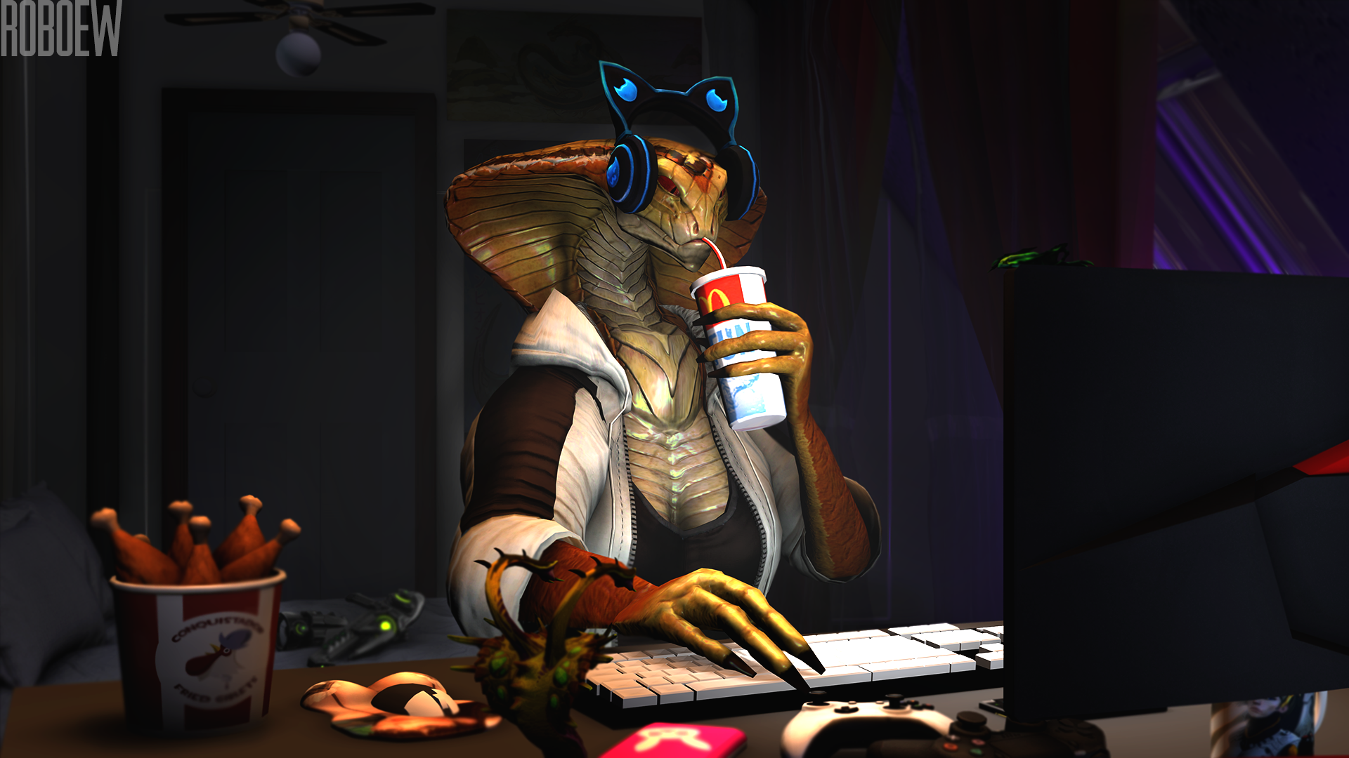 >>82343895robo scalies and robo furries are like crack cocaine to a particular kind of uncreative autist that all share the same set of like three actual ideas between them (screen faces, vore, and the same exact visual aesthetic of glossy plastic paneled robots repeated over and over again)