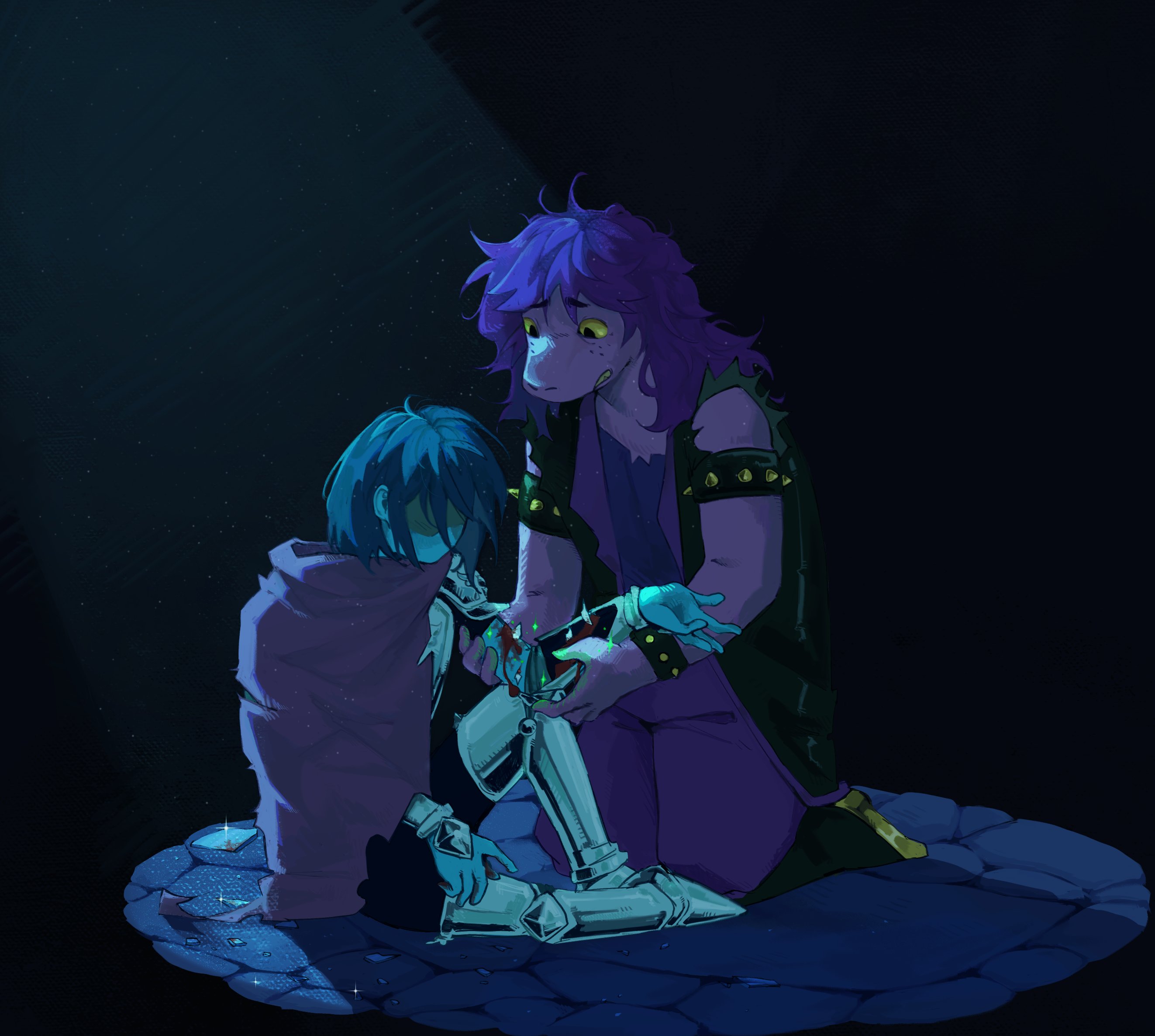 >>82336762She pulled his hands towards her lap and hovered her own above them. Not touching. A new kind of warmth spread through her fingers, like a soft glow. It was nothing like the burning heat from before. This was gentler. Soothing.At least, it was supposed to be. Her forte was spells that inflicted pain, not eased it.