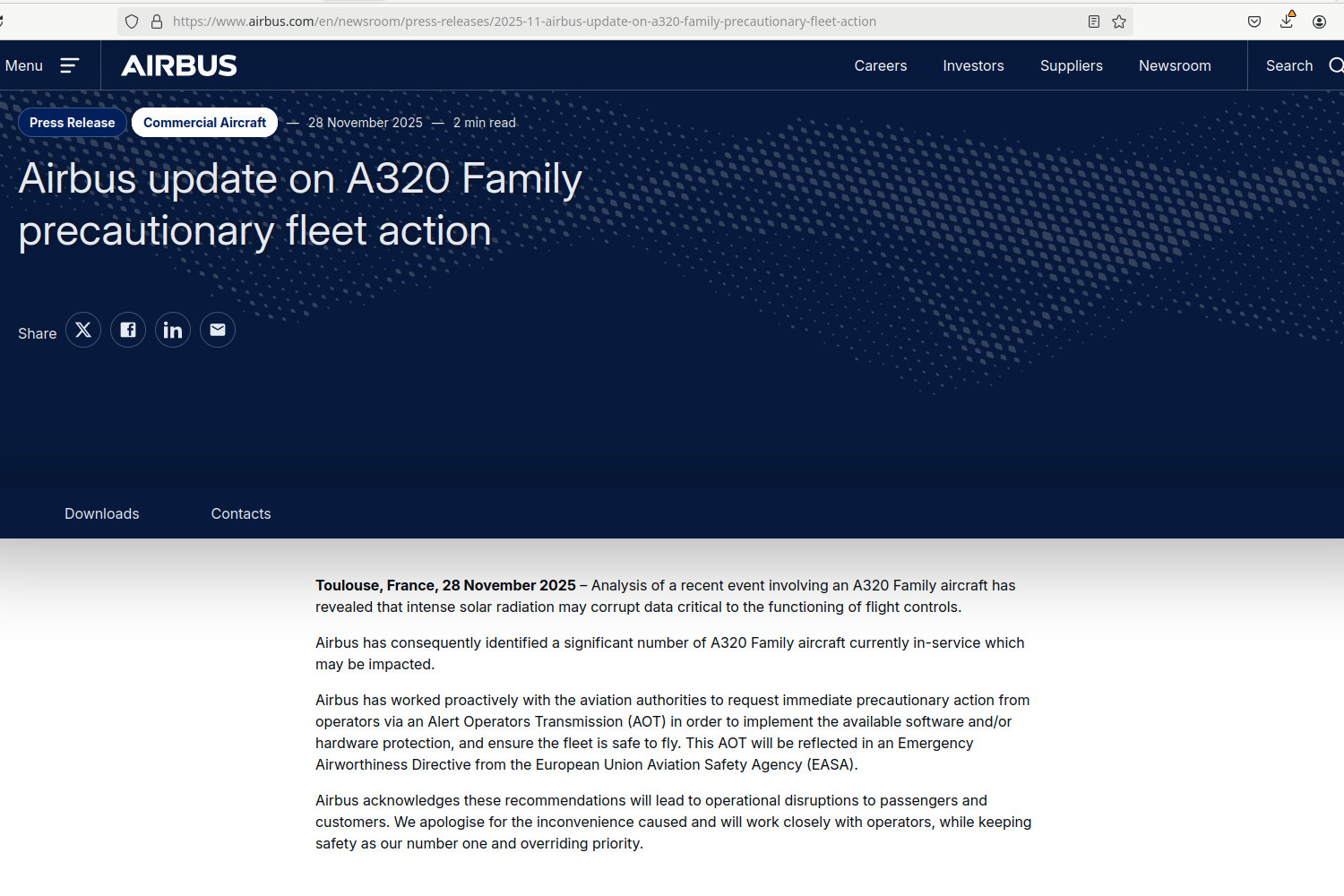 If it's not Boeing, I'm--ACK!!!AIRBUS announces that the A320 can have flight control problems due to SUNLIGHT!Stay safe, fly Boeing.