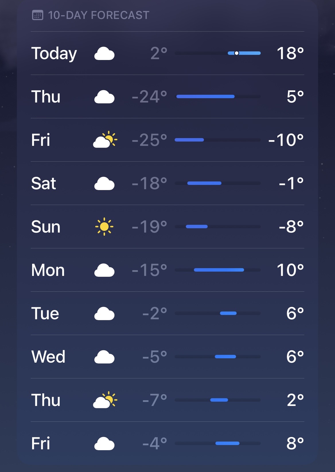 >>2855988I don’t mind cold but this is awful anon. Insane heating bills. A high of -10F is arctic circle shit