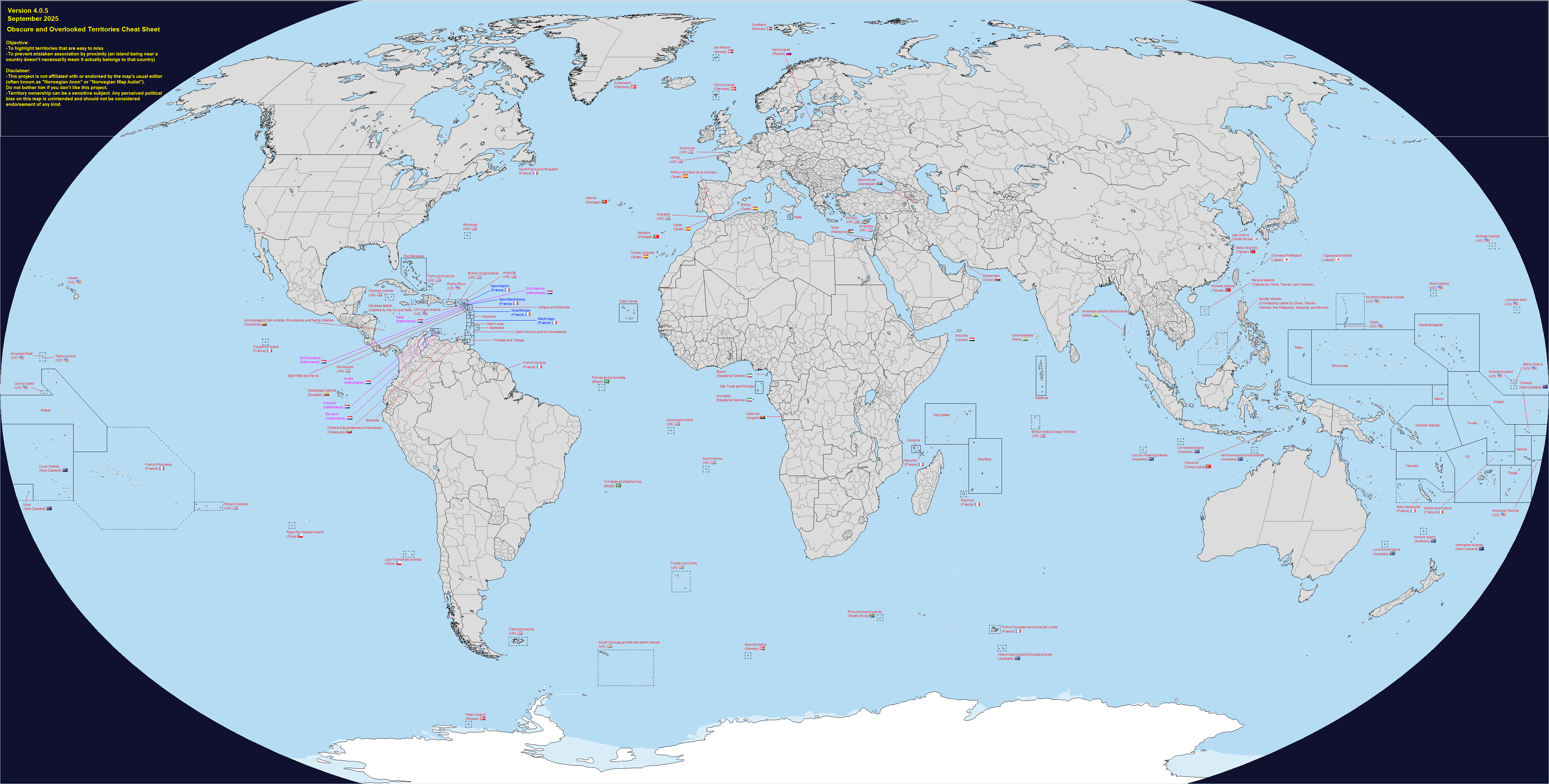 Obscure and overlooked territories cheat sheet. Fun and useful map made by another Anon about the small island nations, various dependencies and other territories that can be difficult to pinpoint on the map.