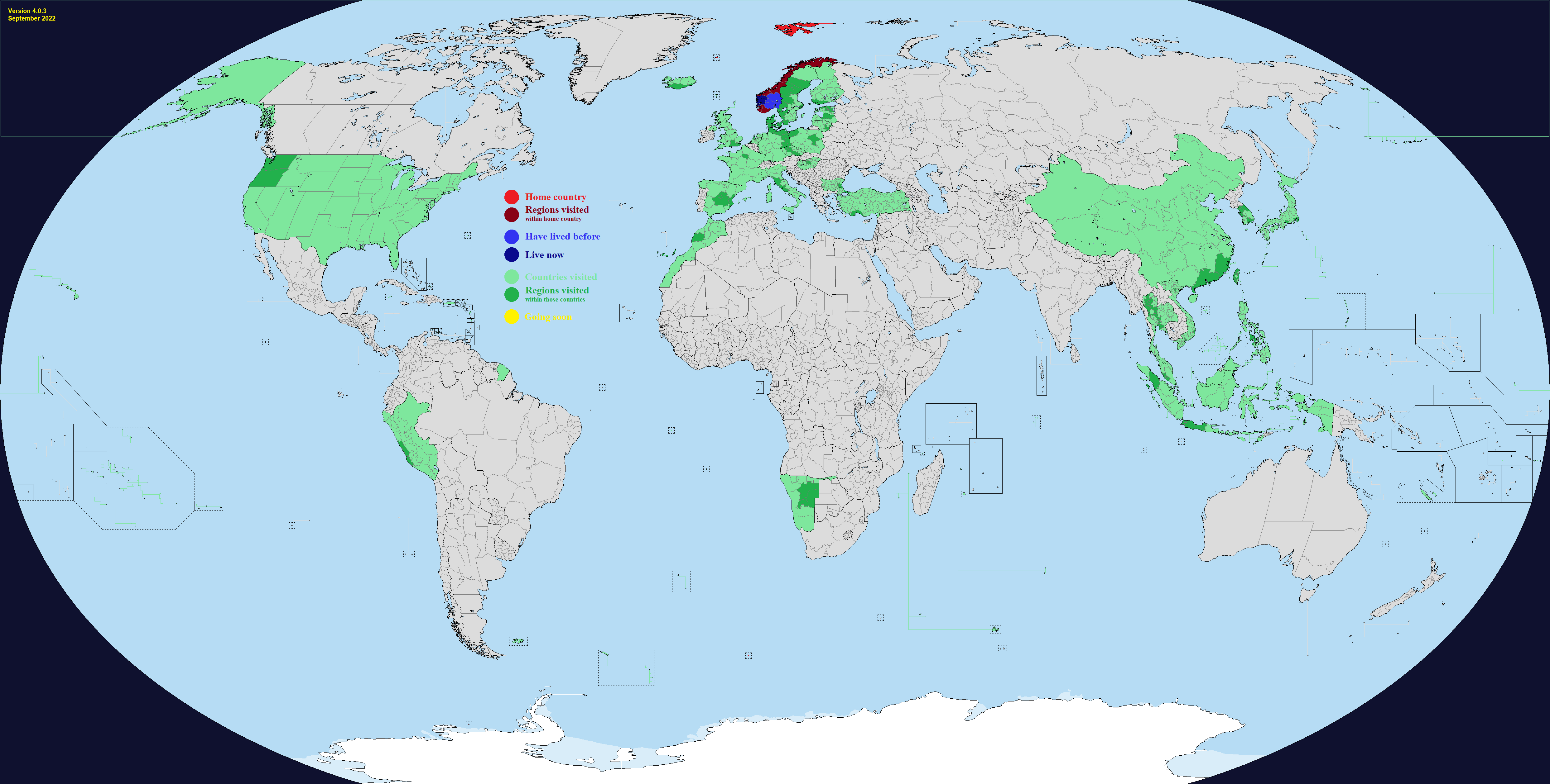 It's not much but I like to really see a country. Regional there is a lot but I can't quite remember everywhere and it's very tedious to do. Southern Hemisphere is just a distance thing, I have plans.