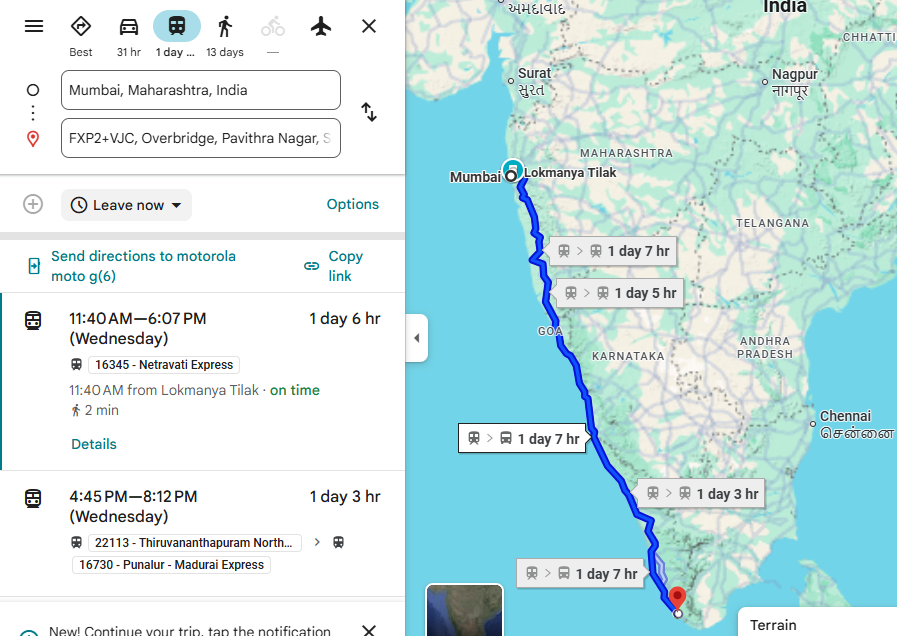 Google Maps makes it so easy to plan a train trip to the next destination with lodging options.