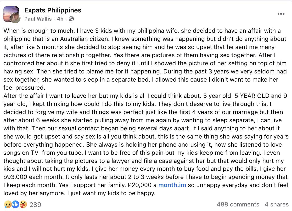 >>2844025There's a few things I left out. The meeting with the boss was real. He said that everyone in the organization refers to the monger types that come through simply as "assholes." He also told me a story about a dude that was dating a girl, giving her money etc, then one night after she left his condo he watched her walk up the street and get onto a Filipino dude's motorcycle.Even though I bragged about never being a monger I used to read their forums. Like Philippines Addicts etc. In the old days they used to joke about this shit. Getting cucked by Filipinos. My ex told me that some of these girls here believed back then that they can't find love with a foreigner, just a Filipino. Modern passport bro types arriving with a superiority complex and no cultural awareness are setting themselves up to get rekt by things like this. I've watched things go down here over multiple eras. I'm not lying when I say it's not like it used to be. All I need to do is step outside and walk up the street. I can see what the girls that are with these guys look like. I can tell by how she's dressed if she's his wife or just his companion. A lot of these wives look rode hard and put away wet. It's not like there's nothing left here but it's the end of an era. Changes are happening fast.