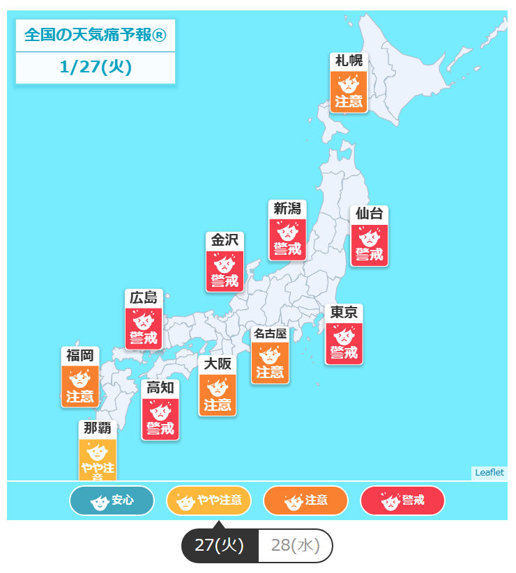 >>2857877Low pressure is affecting Tokyo today and tomorrow, with weather-related pain warnings in effect. Your headache is probably caused by the low pressure.