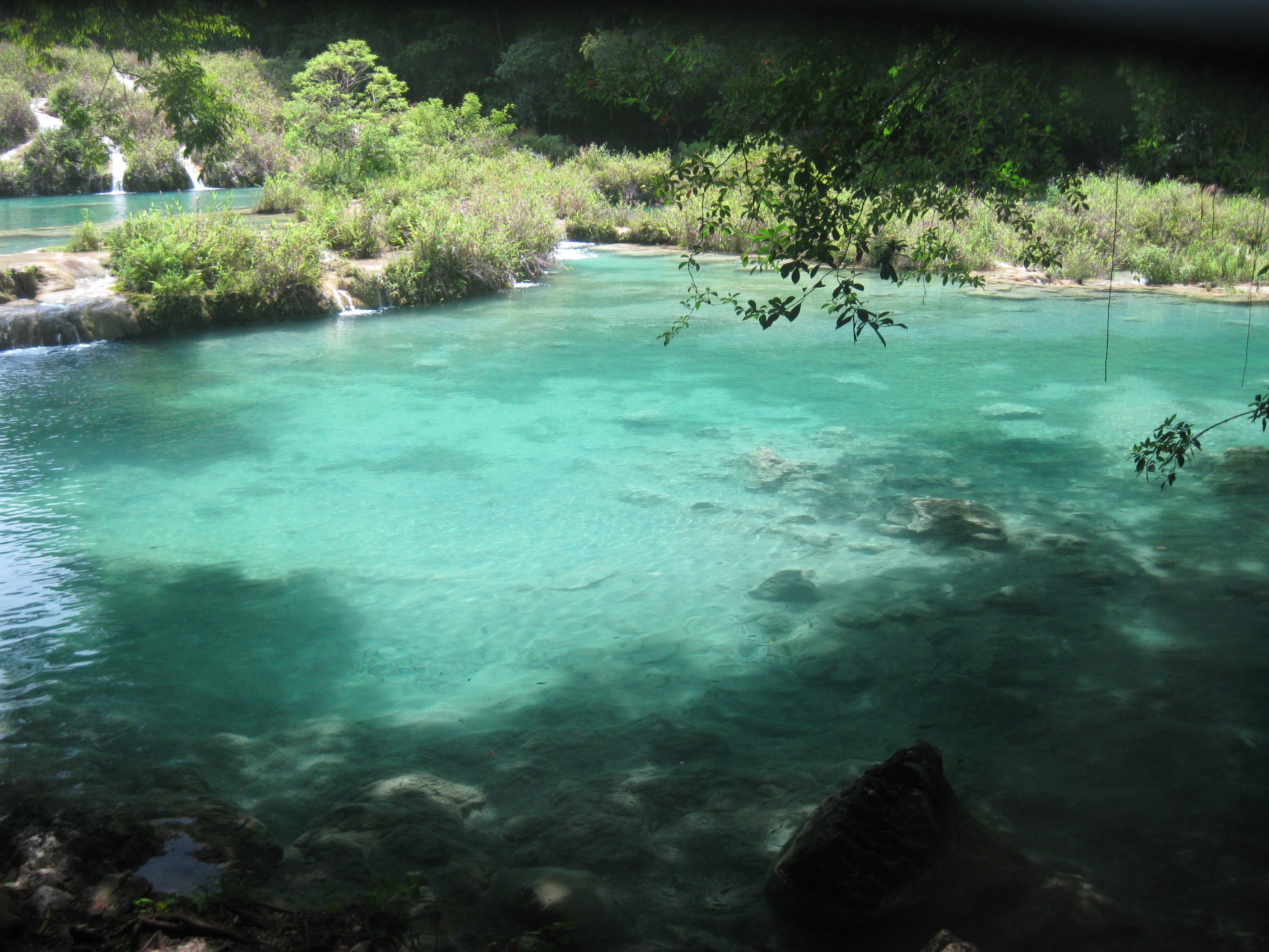 semuc champey is one of the coolest natural wonders I've ever seen. A mountain river spilling out of the jungle into these cascading pools, which are probably 80 feet wide, and 6 feet deep, warm, clean, and full of colorful fish that will clean your feet if you let them. it takes several hours of sketchy bus rides to get to, but once you are there, the amenities are decent, the people are cool, and no crime that i could see. also the locals vacation there with their families so it's not some kind of gringo trap. you can take a guided tour of the caves near there, which are amazing and, frankly kind of dangerous. still worth it though. make sure you have good shoes as it's very easy to lose flipflops in the pitch black water filled caverns