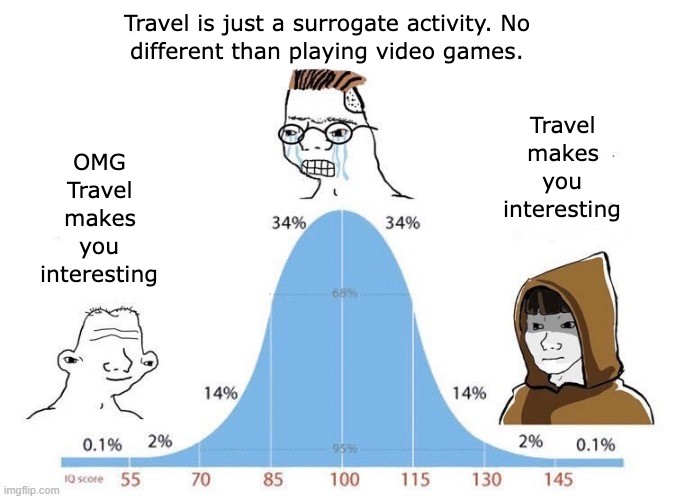 Only real travel makes you interesting. You're probably a redditor that is psyched because his instagram post of the eiffel tower got a few likes.