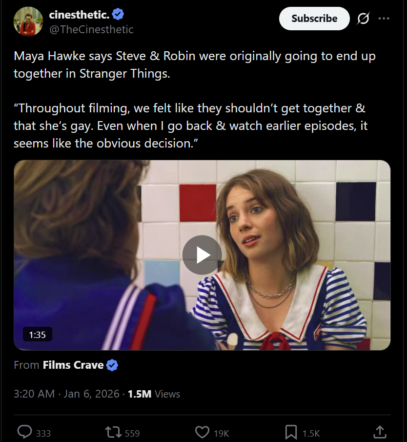 The rumor I heard was that the Duffers promised Netflix they would have LGBT representation in the show's second season, and that the plan was to have Billy be a self-hating closet case - this was heavily hinted at through the first half of the season. However, the actor who played Billy found out about it, and flipped out and threatened to quit over it. So Maya Hawke decided to volunteer instead, and the Duffers shrugged their shoulders and quickly rewrote the end of the season, which is why it came off as such a random thing with zero foreshadowing.
